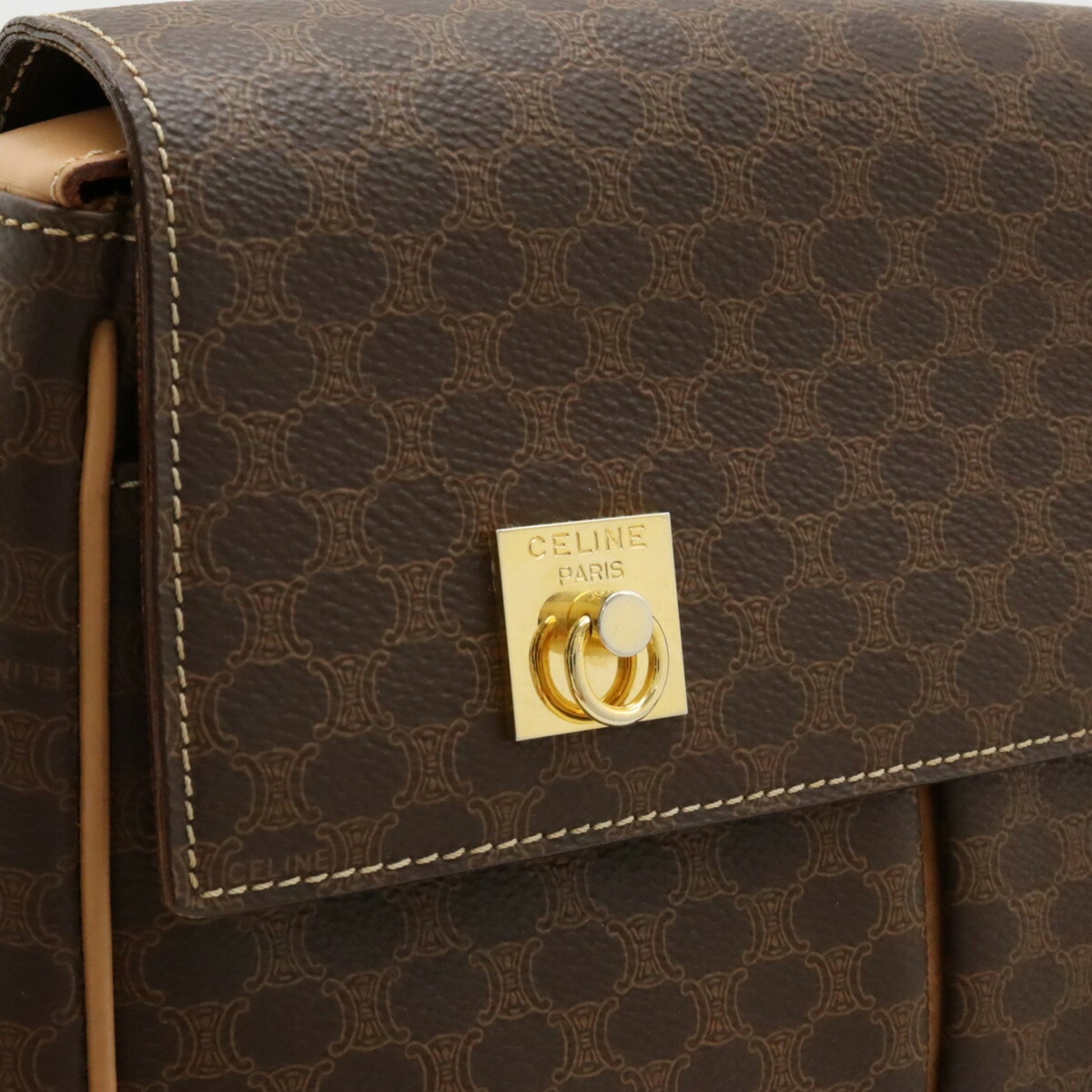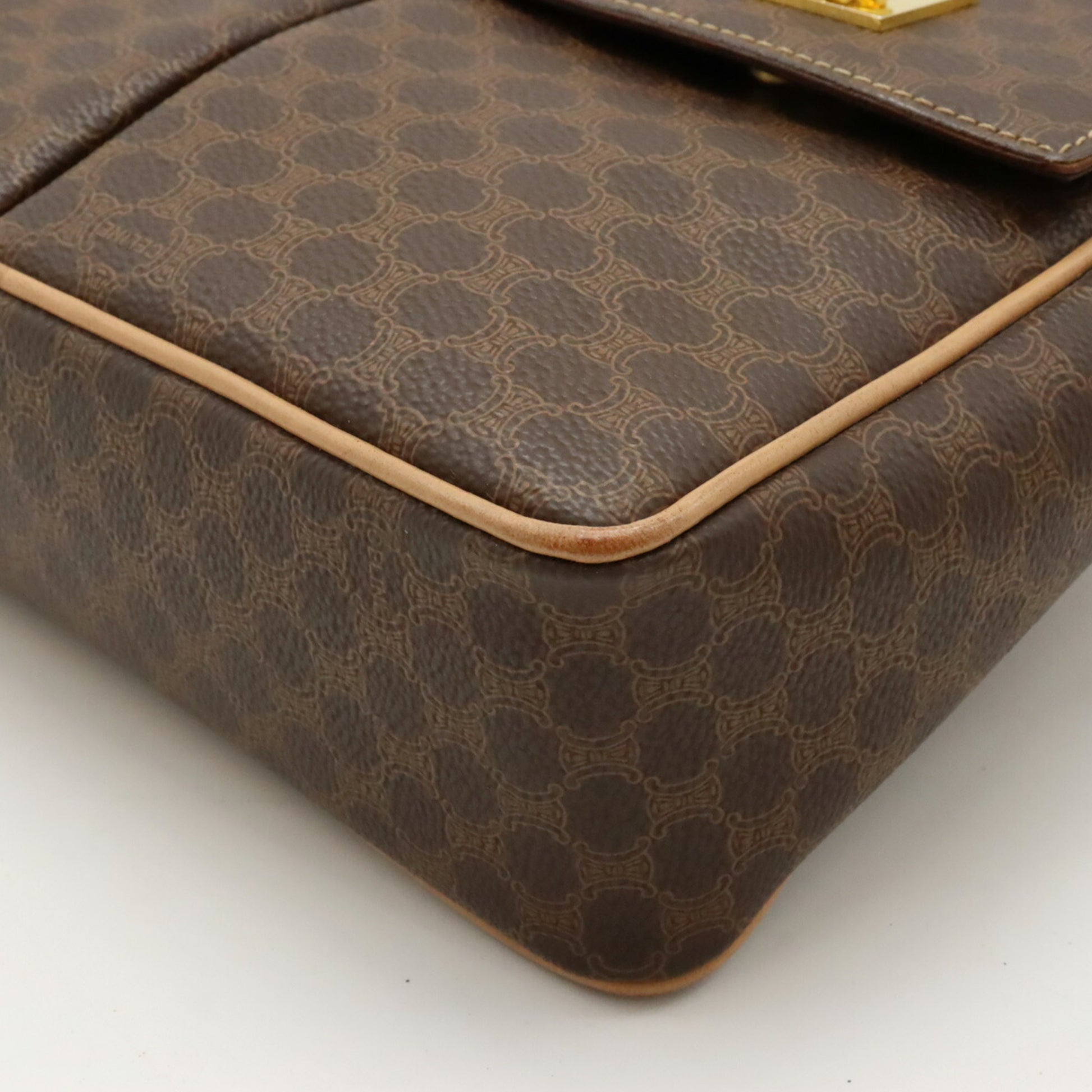 Celine Macadam Pattern Blazon Shoulder Bag Pvc Leather Dark Brown Light