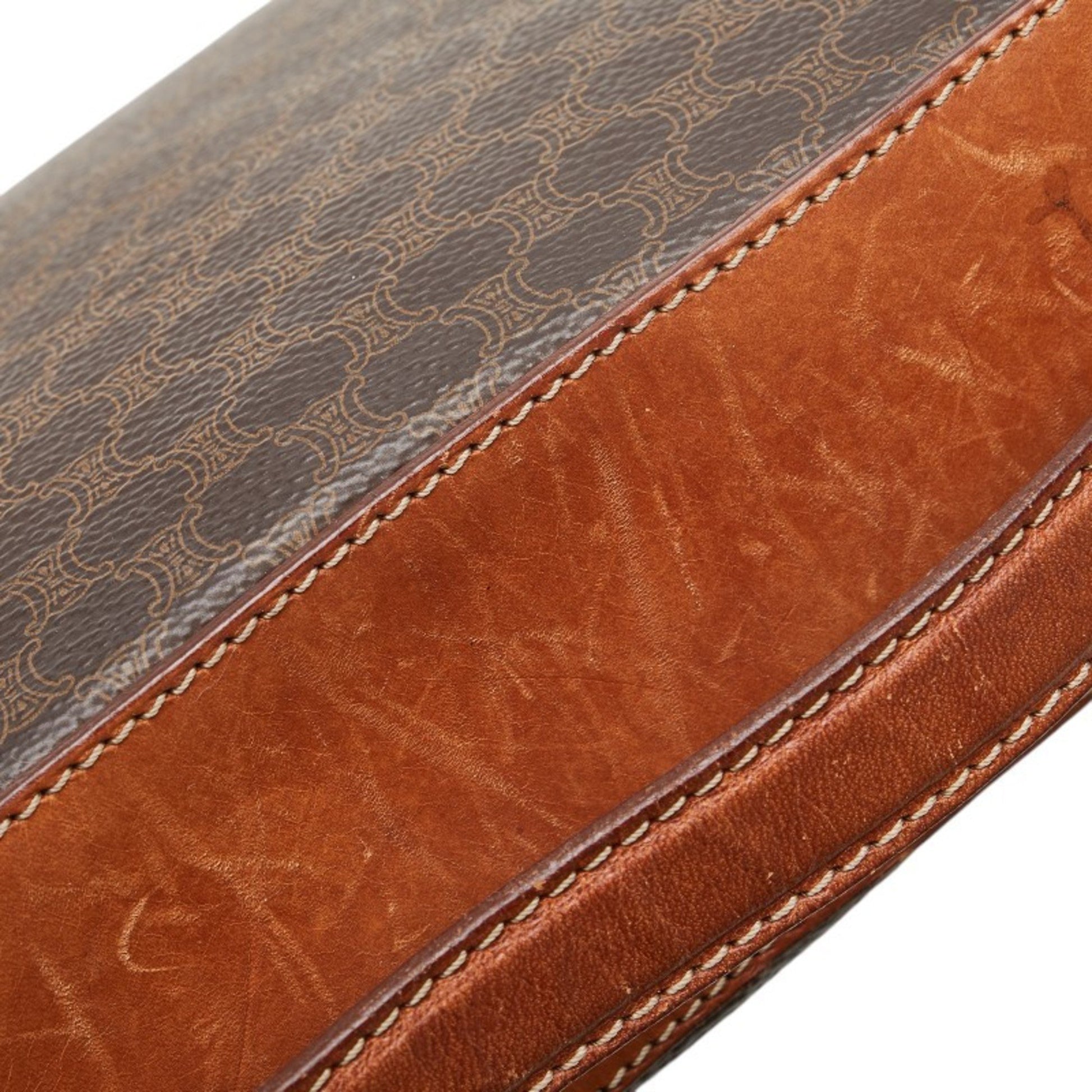 Celine Macadam Vanity Bag Handbag Pouch Brown Pvc Leather