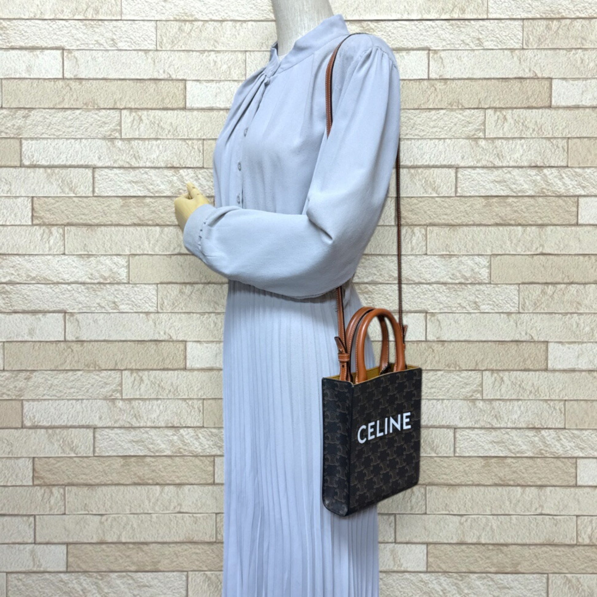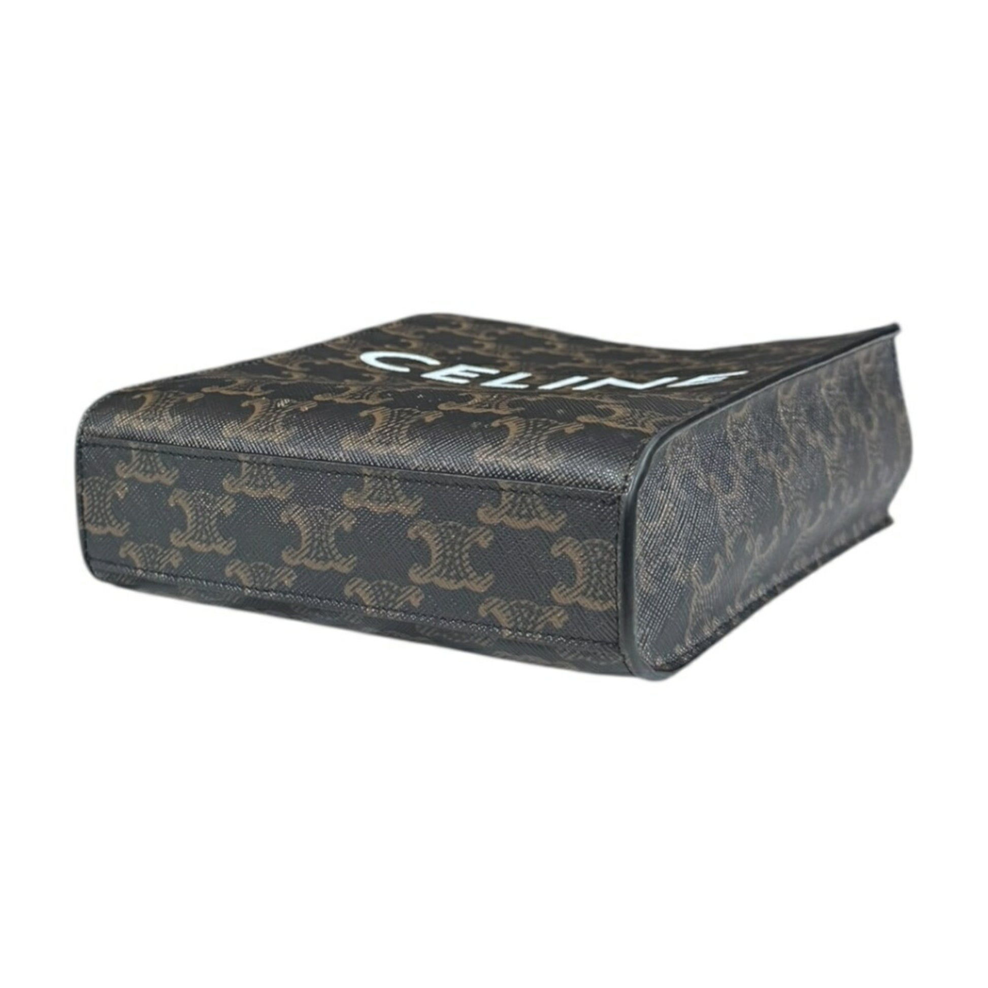Celine Mini Vertical Cabas Triomphe Shoulder Bag Coated Canvas 194372 Brown