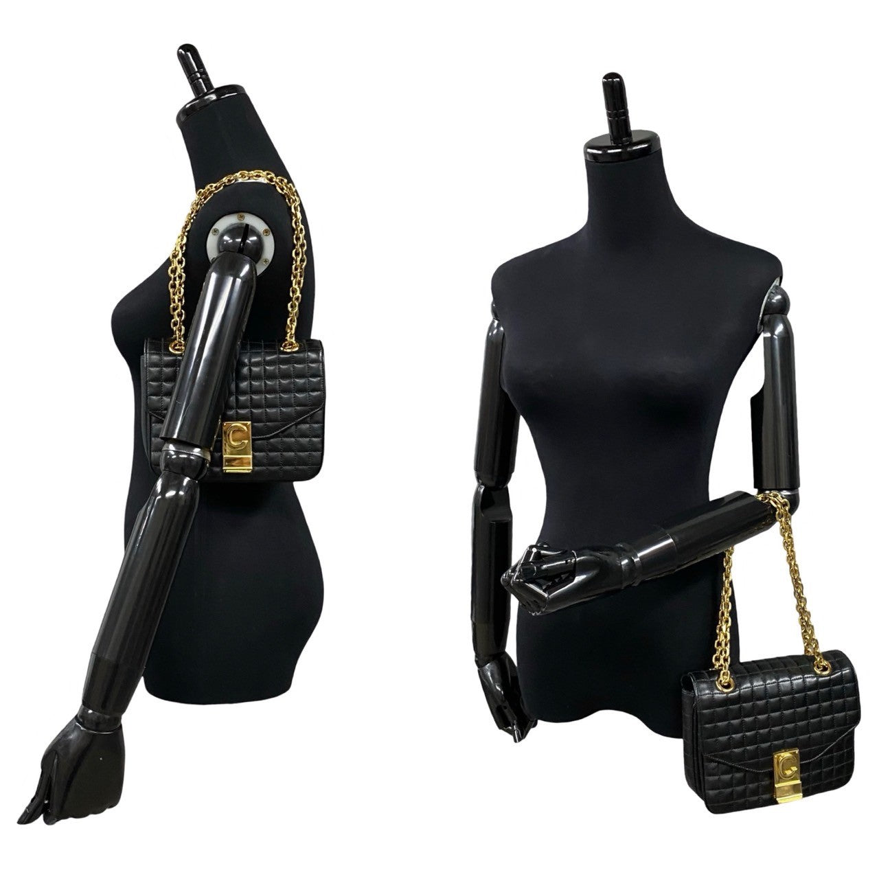 Celine Shoulder Bag Leather Black C-S Quilted Chainshoulder Small Women