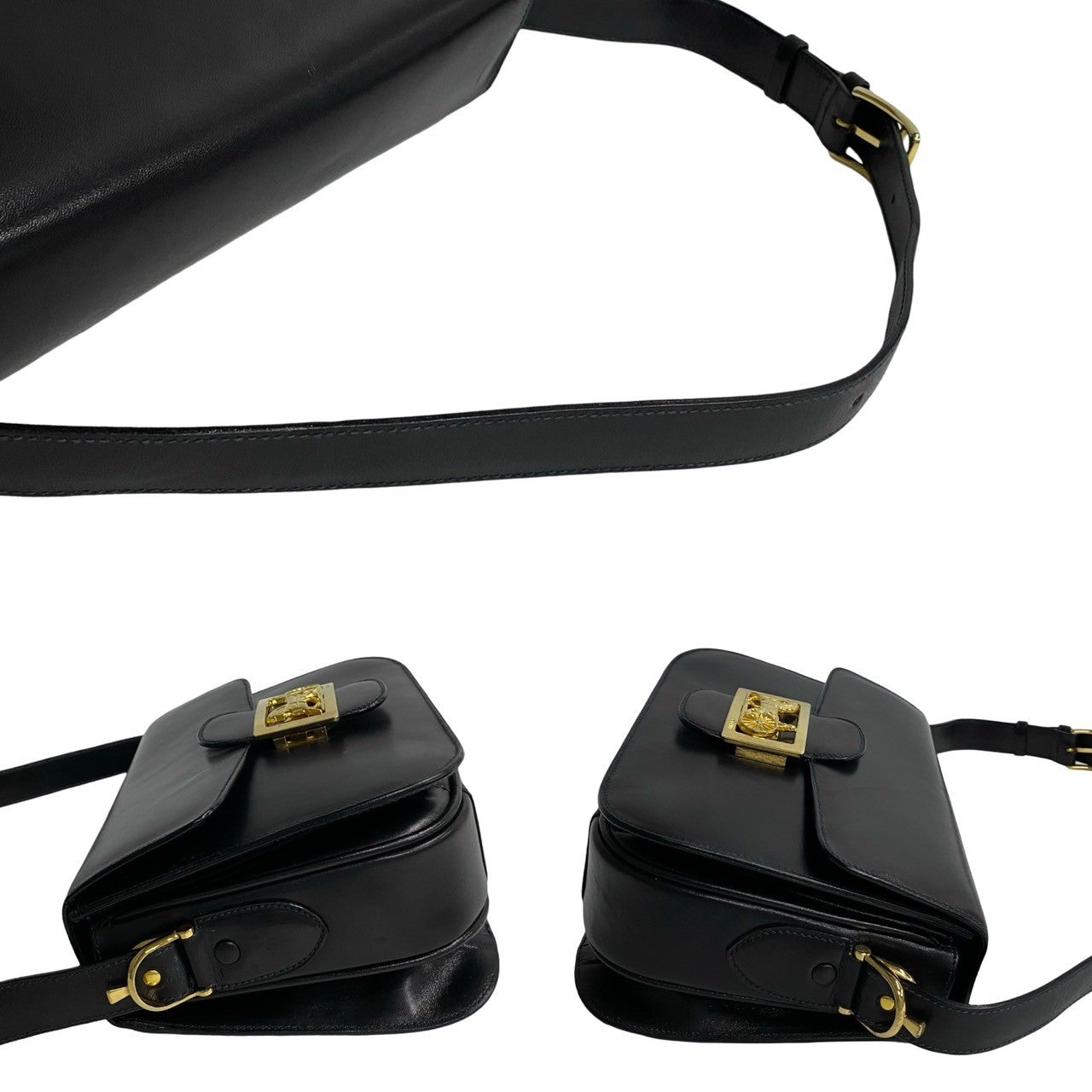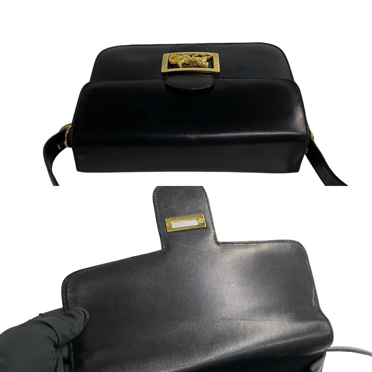 Celine Shoulder Bag Leather Black Logo Carriage Metal Women(Unisex)