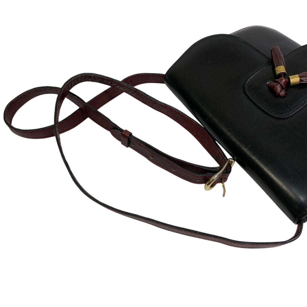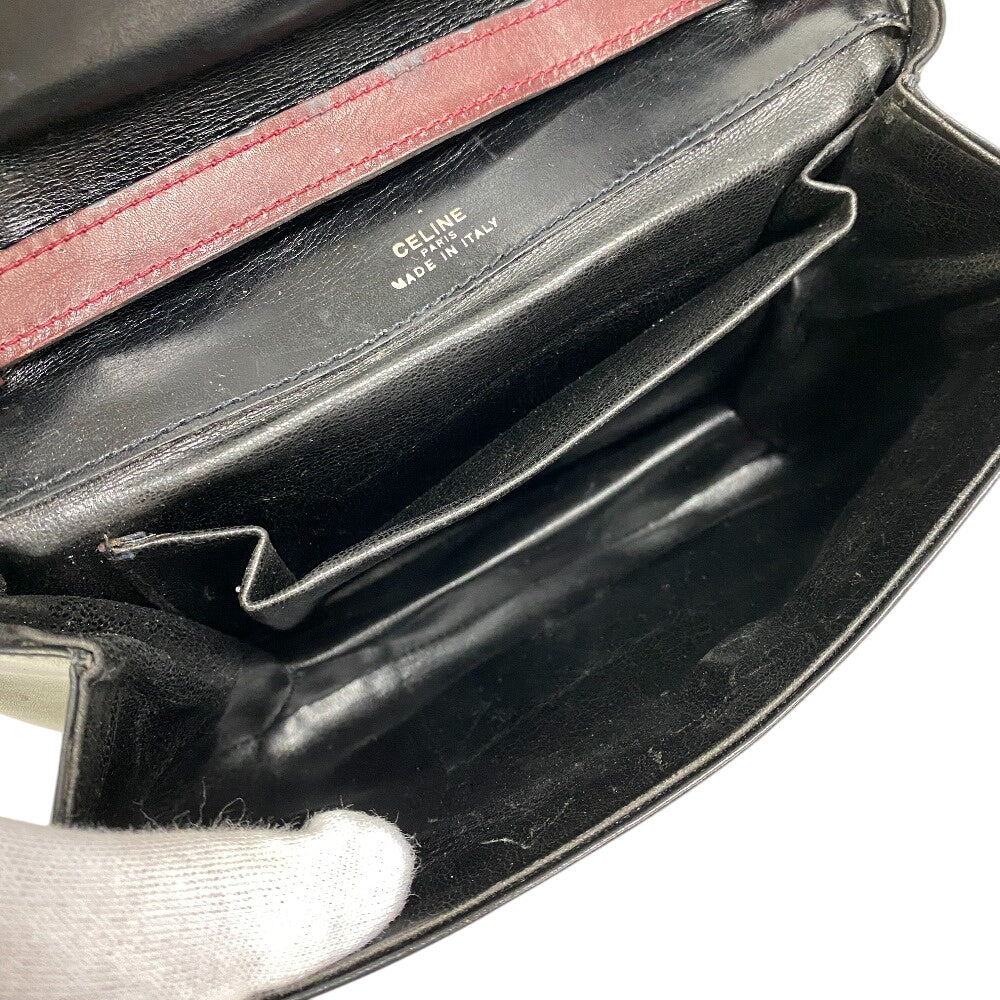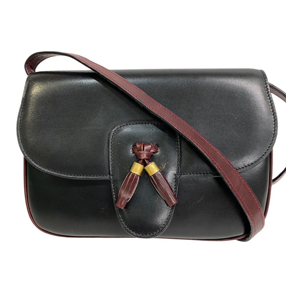 Celine Shoulder Bag Leather Black Round Fringe Tassel Medium