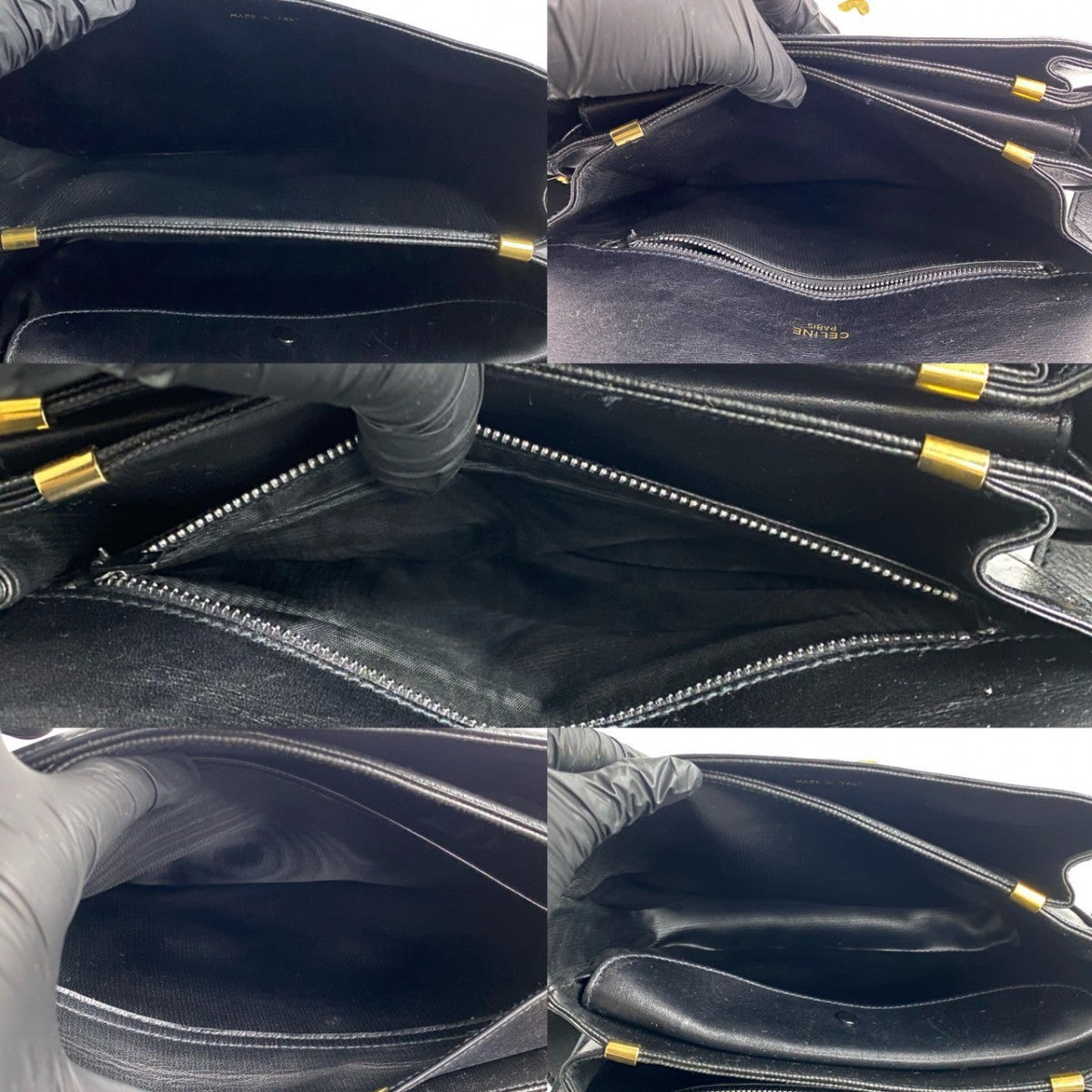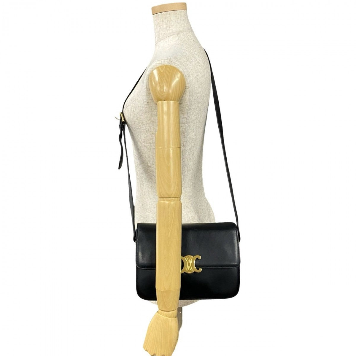 Celine Shoulder Bag Leather Black Triomphe Logo Metal Women