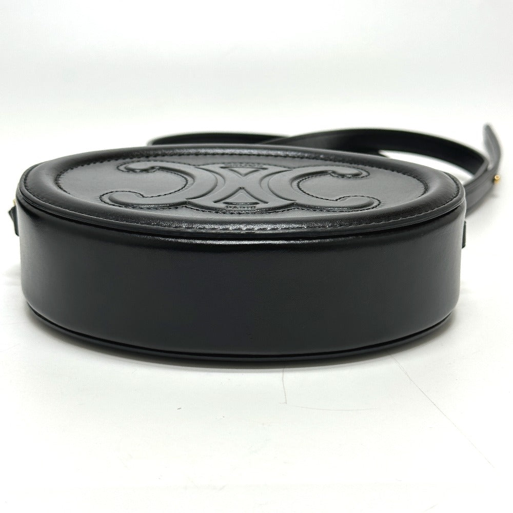 Celine Shoulder Bag Leather Black Triomphe Oval Purse Cuir Women