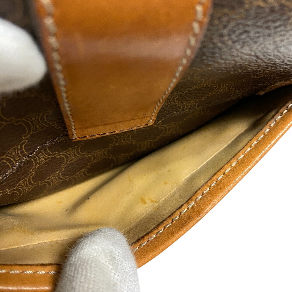 Celine Shoulder Bag Leather Brown Pochette Vintage Macadam Women