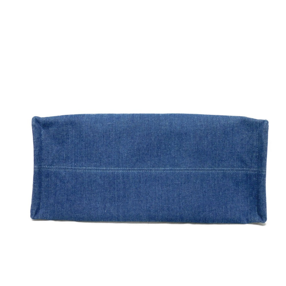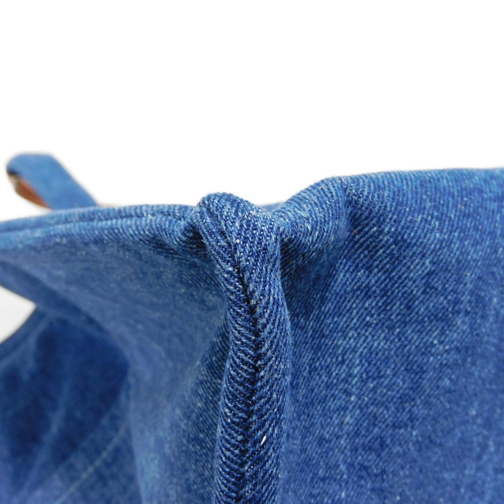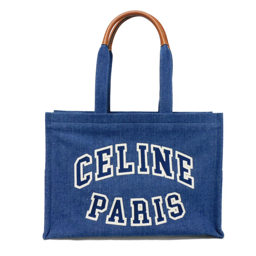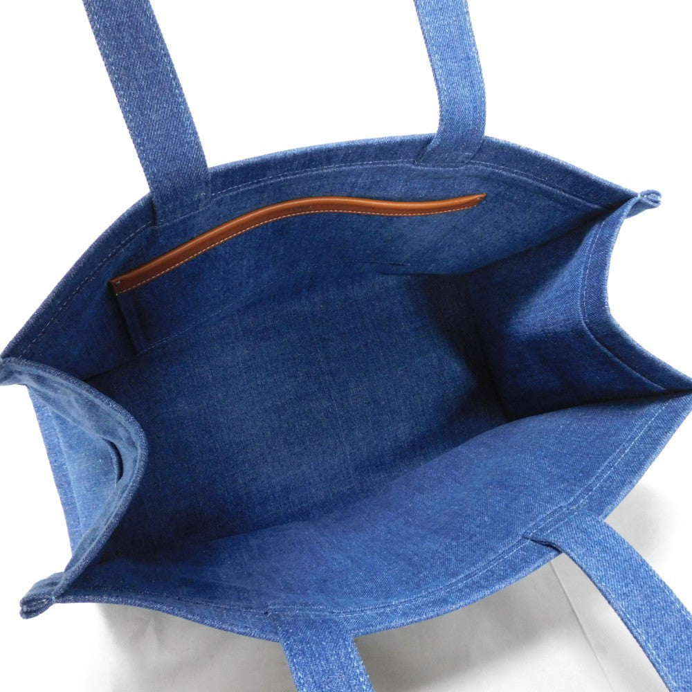 Celine Tote Bag 196762Ef7.07At Cotton Blue Tan Calfskin In Good Condition Logo Applique Large Hippo