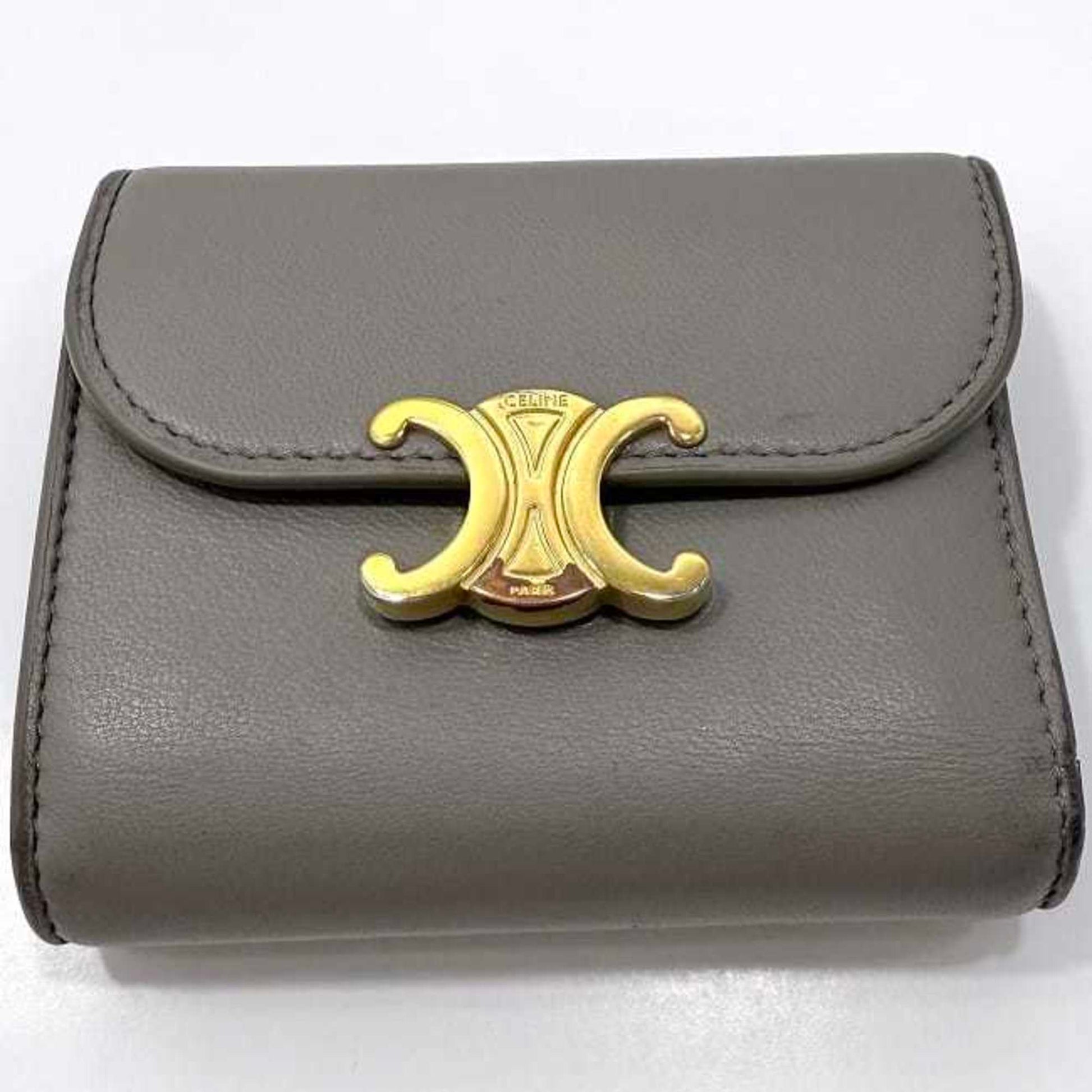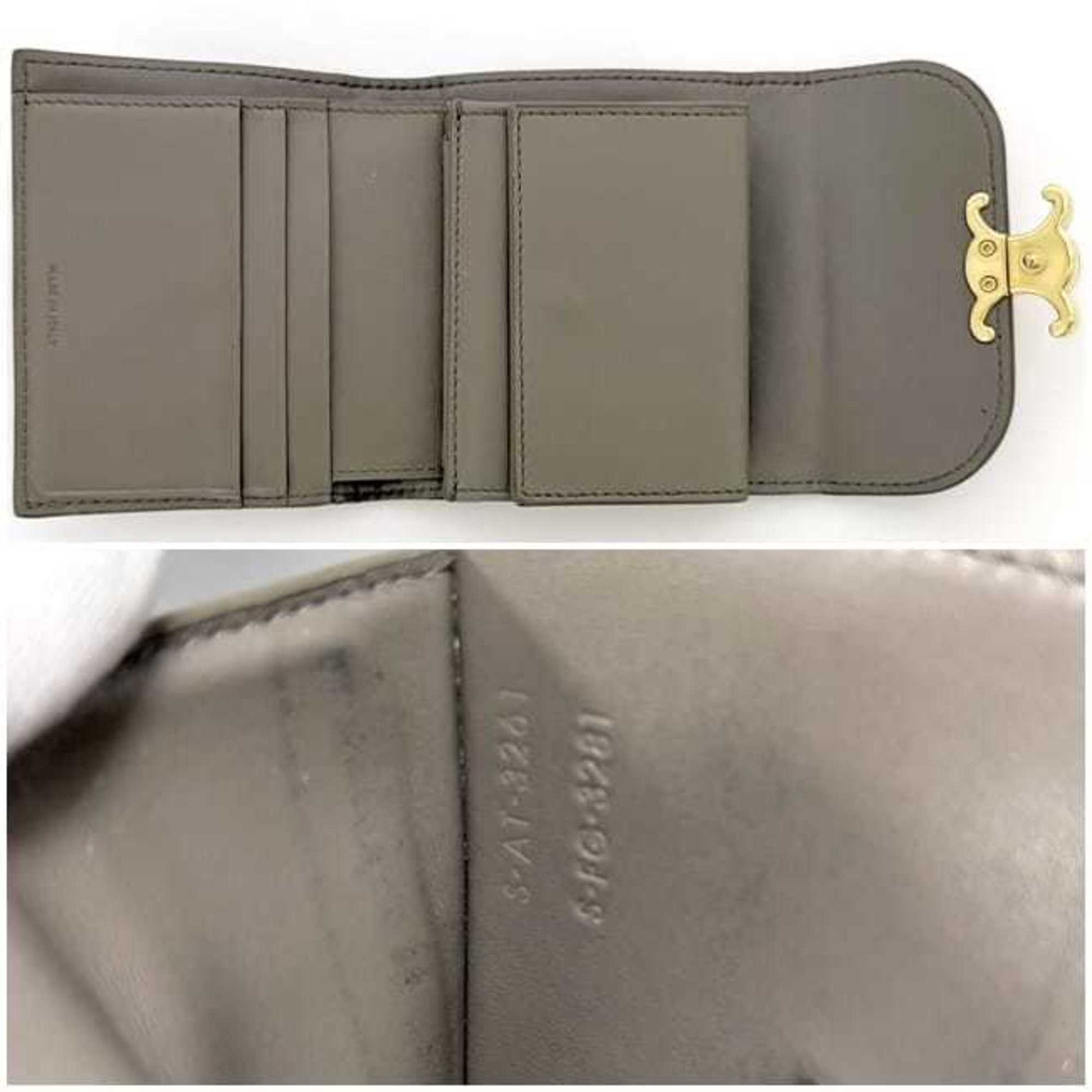 Celine Tri-Fold Wallet Ec-23083 Beige Triomphe Leather S-At-3261/S-Fg-3281 Celine Compact Metal