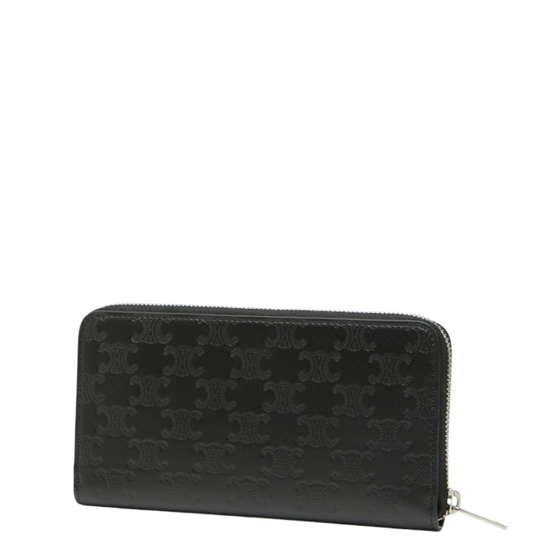 Celine Triomphe Round Zip Long Wallet In Black Leather