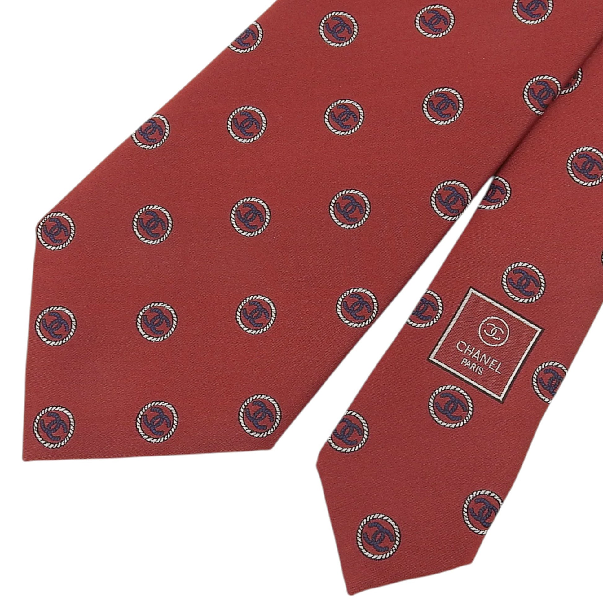 Chanel 100% Silk Coco Mark Logo Design All-Over Print Tie