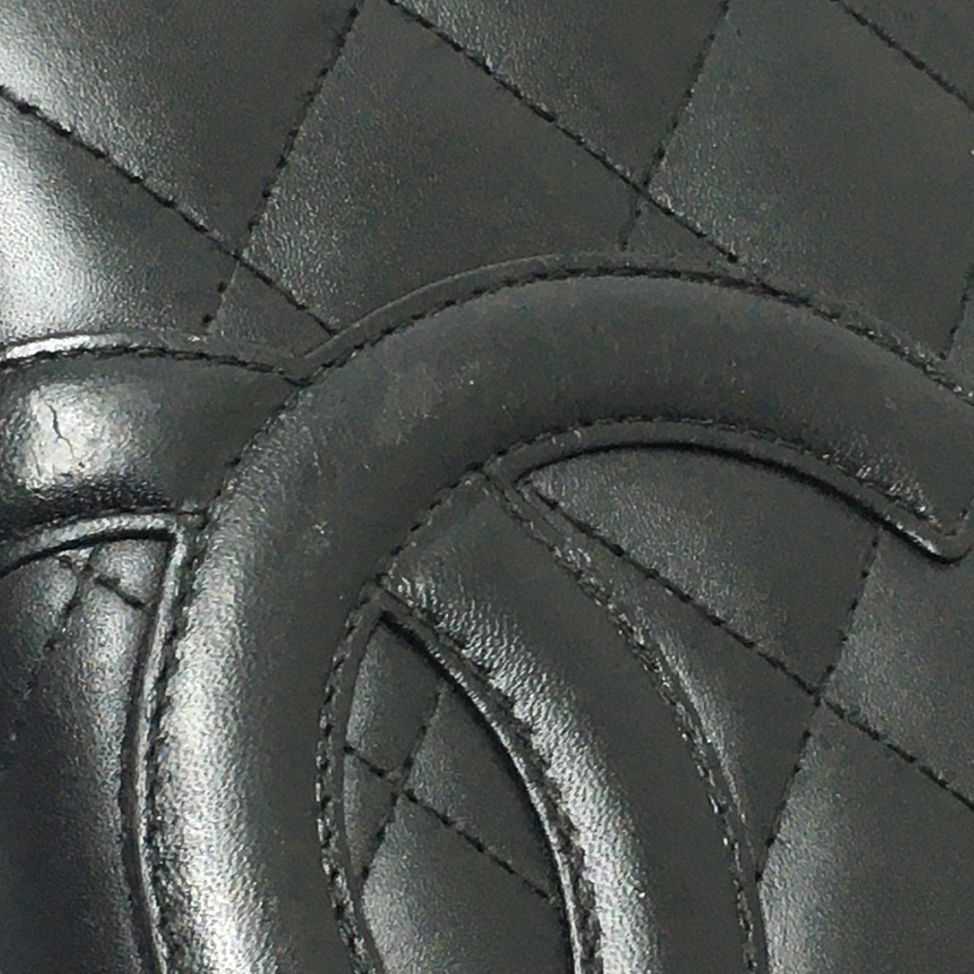 Chanel A26710 Cambon Line Zip Around Long Wallet Black X Pink