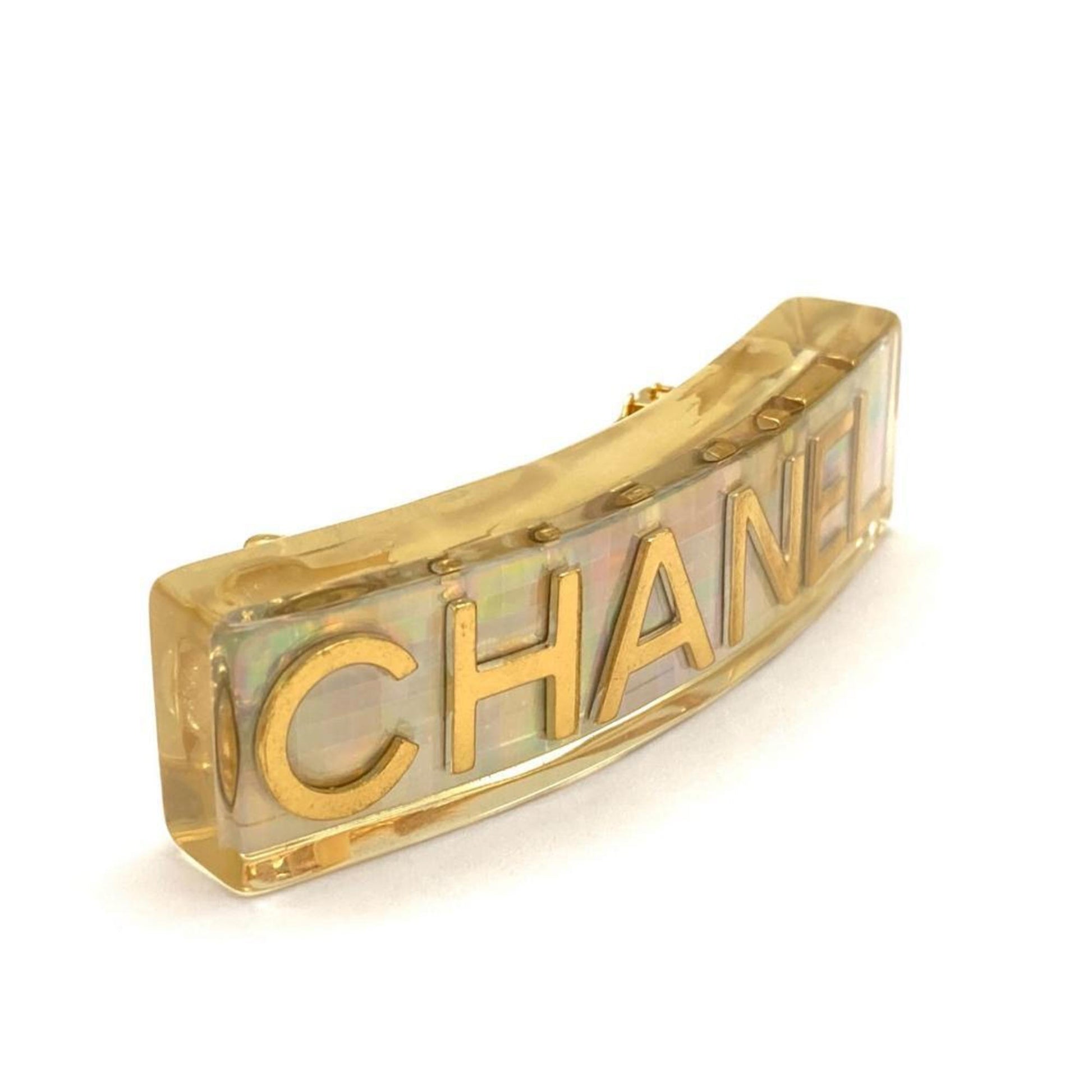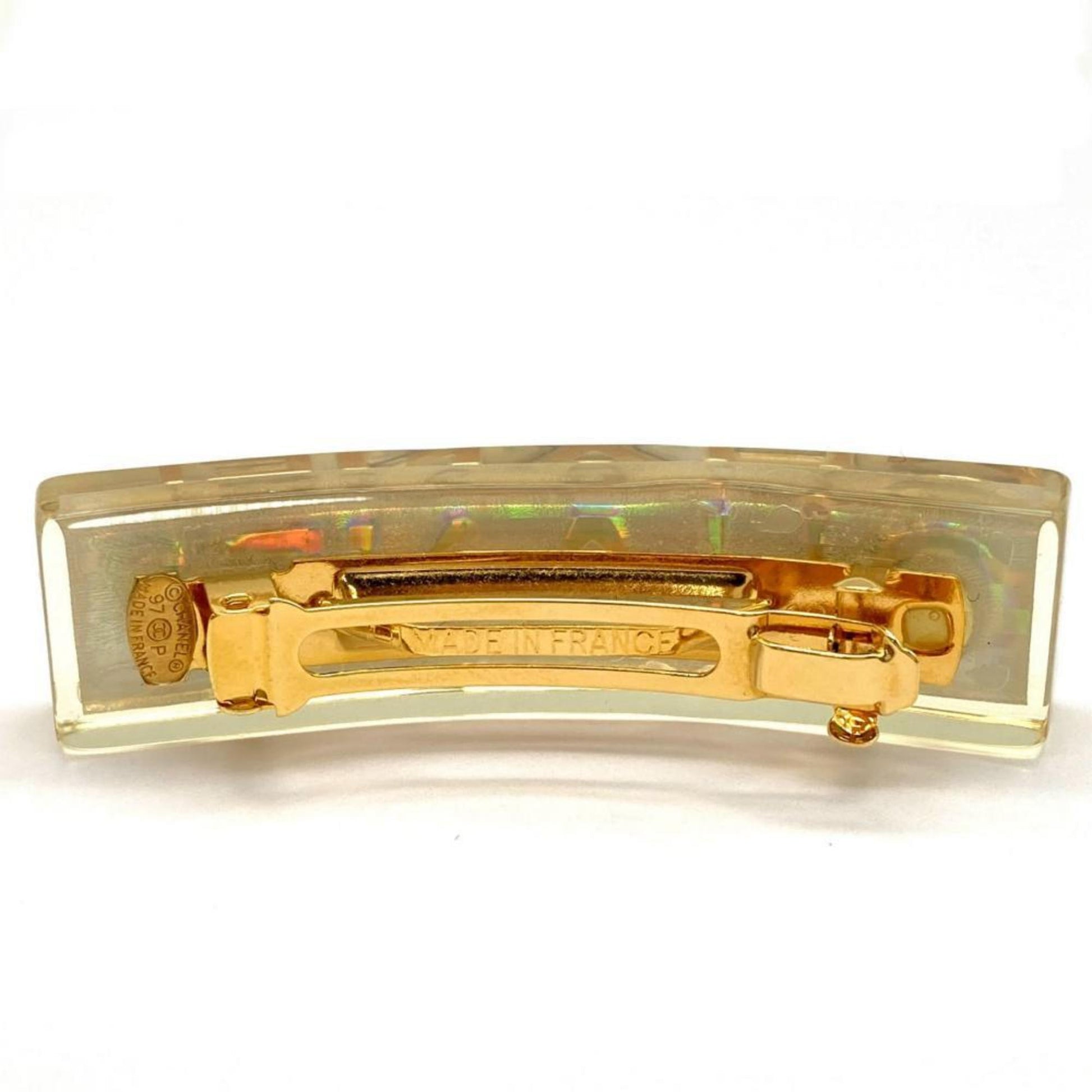 Chanel Barrette Hair Clip Plastic 97P Engraved Clear Hologram Prism