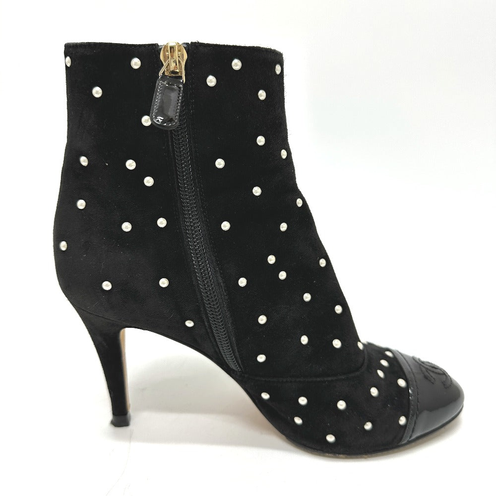 Chanel Boots G G33426 Suede Black Pearl Dot Women 36C