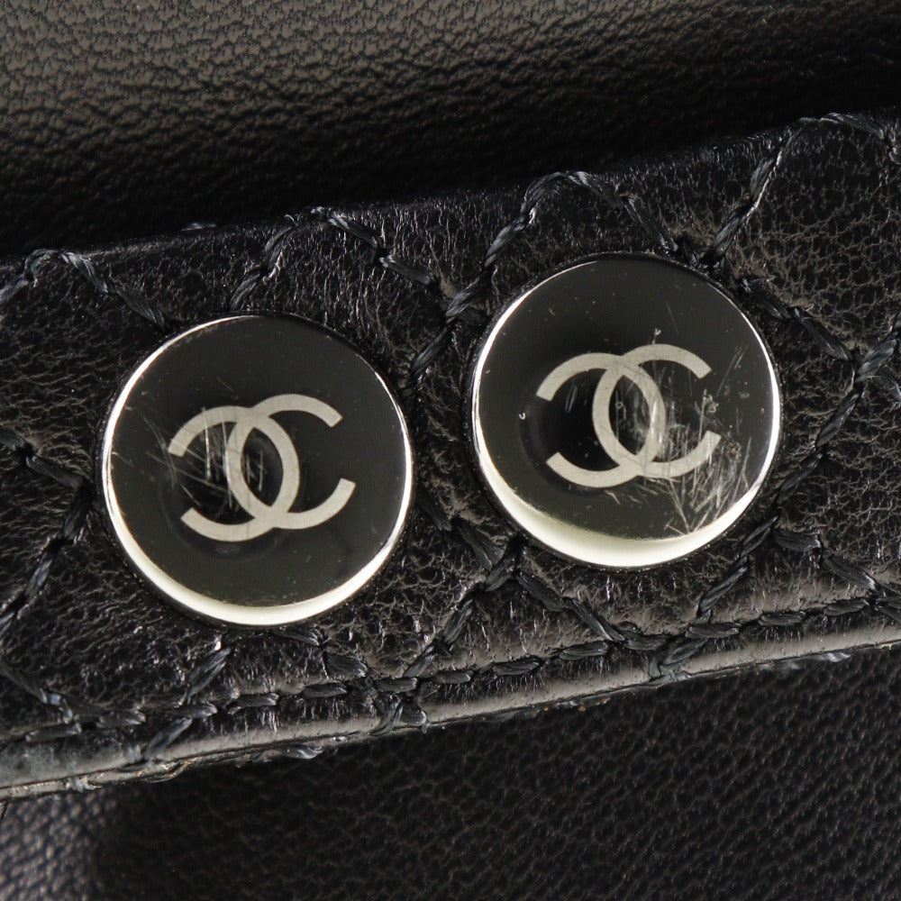 Chanel Boots Leather Black Matrasse Coco Mark Women 34 1/2