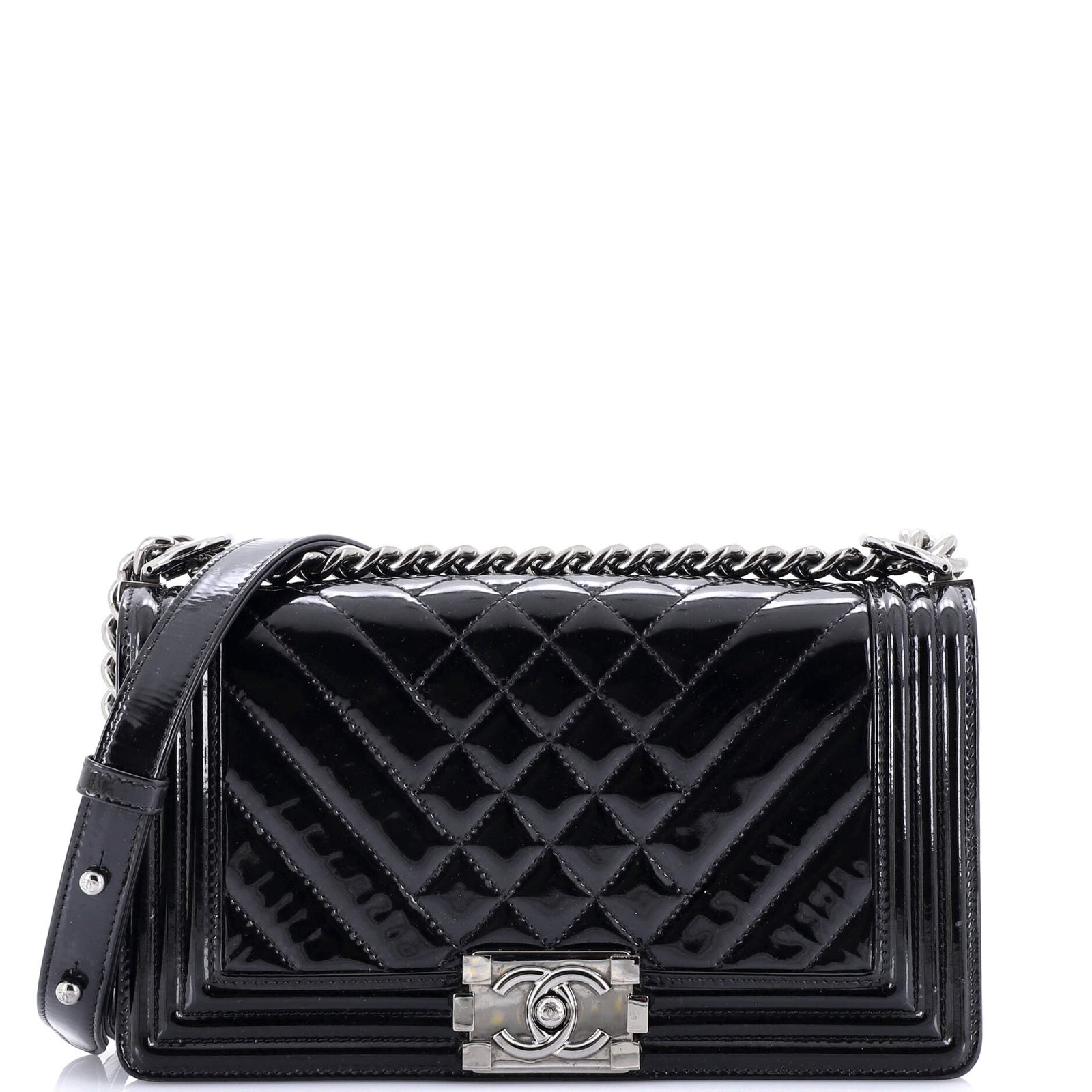 Chanel Boy Flap Bag Chevron Patent Old Medium