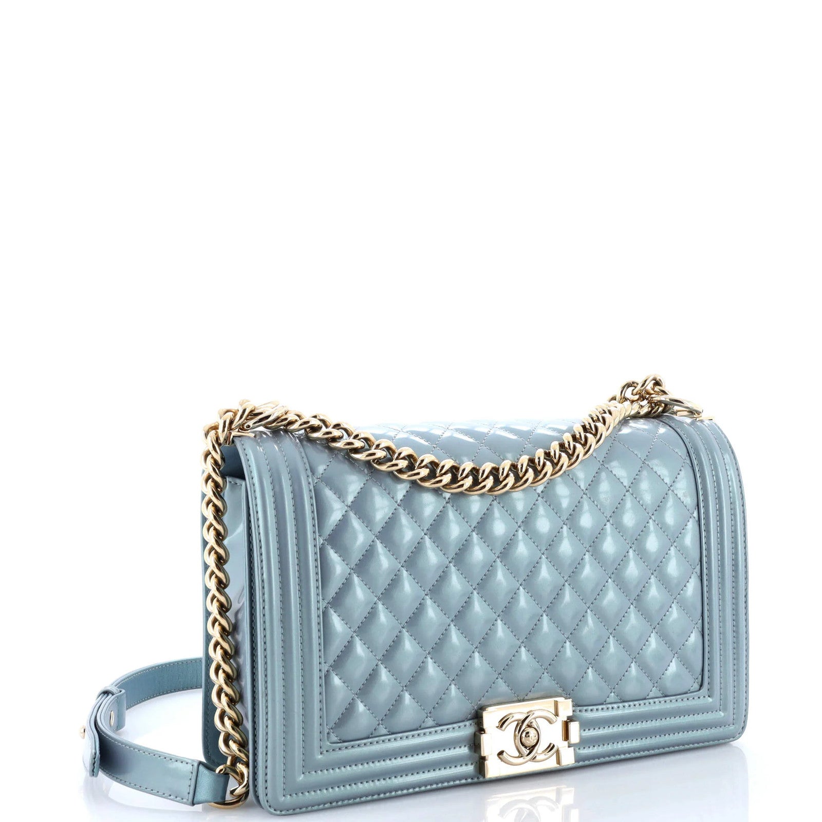 Chanel Boy Flap Bag Quilted Iridescent Patent New Medium