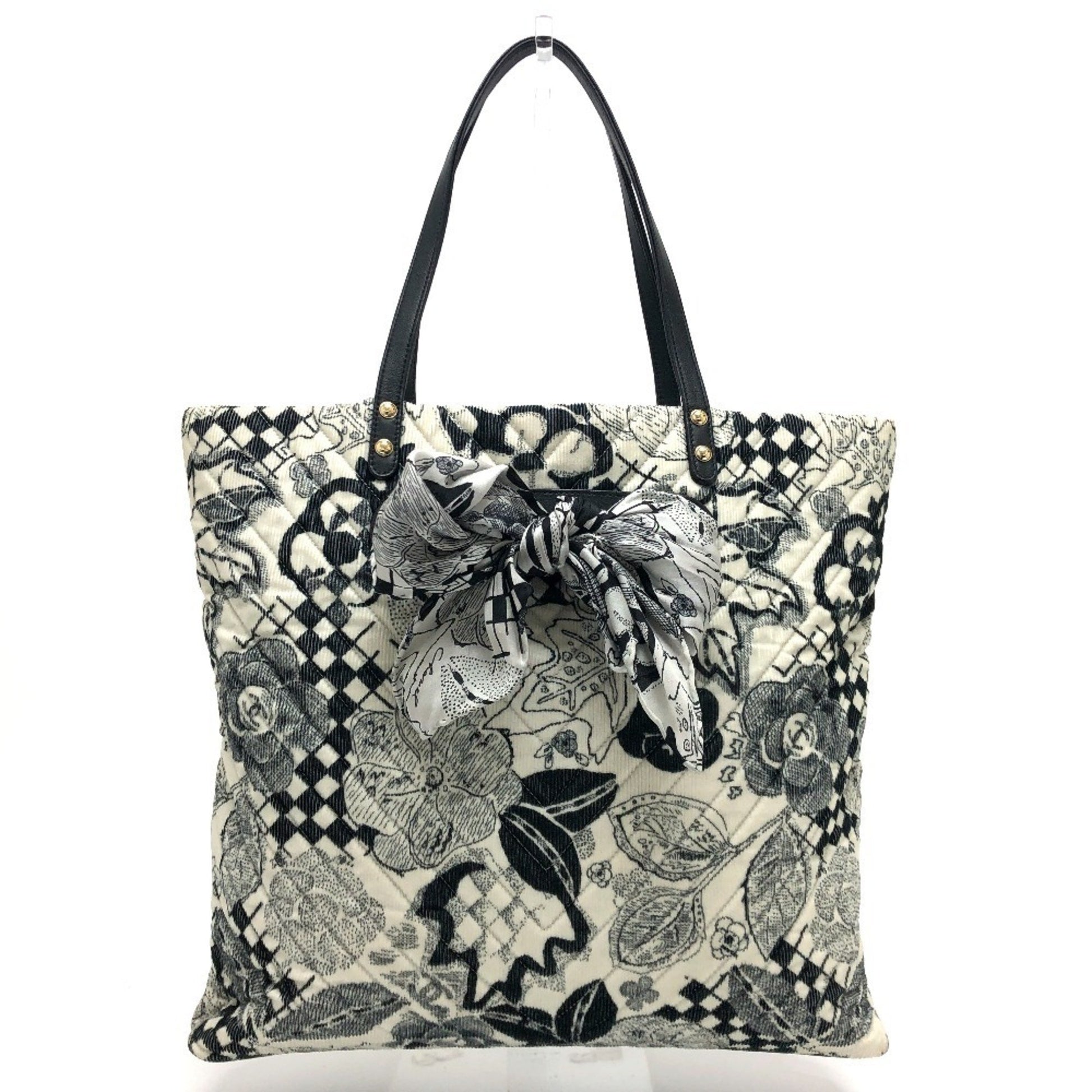 Chanel Camellia Bag Chevron Corduroy Shoulder Ribbon Handbag Tote Canvas