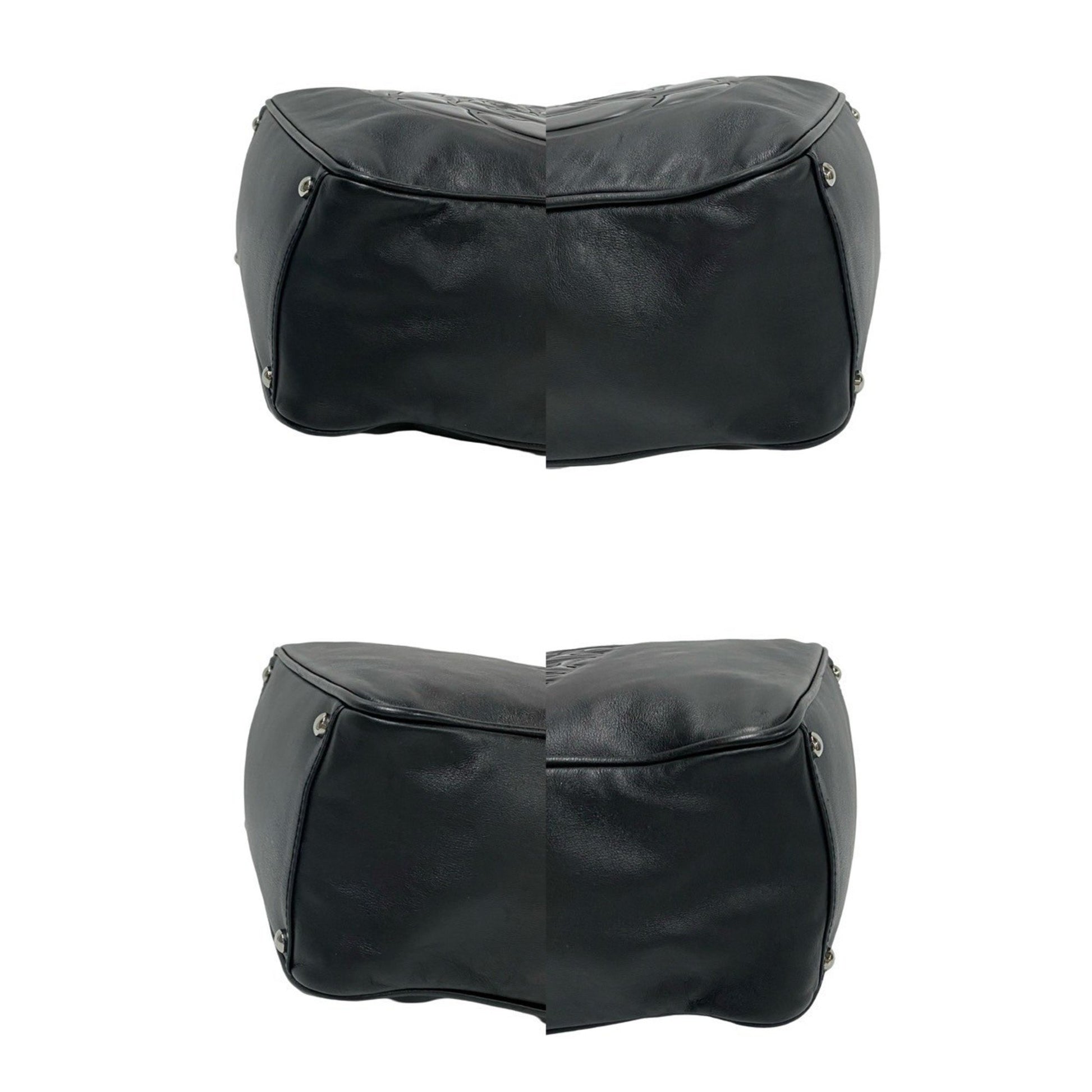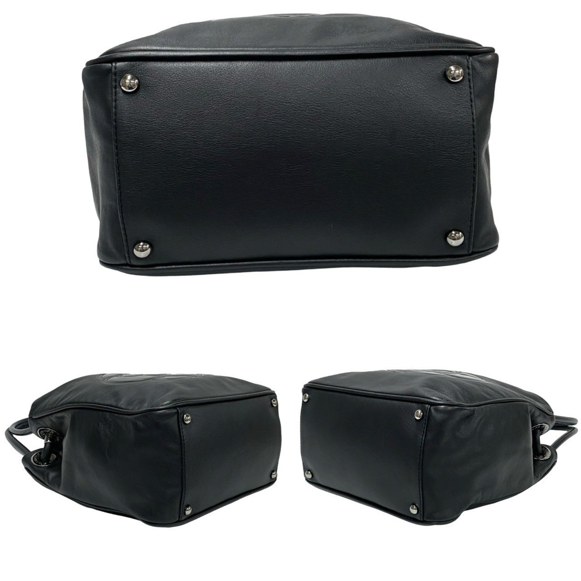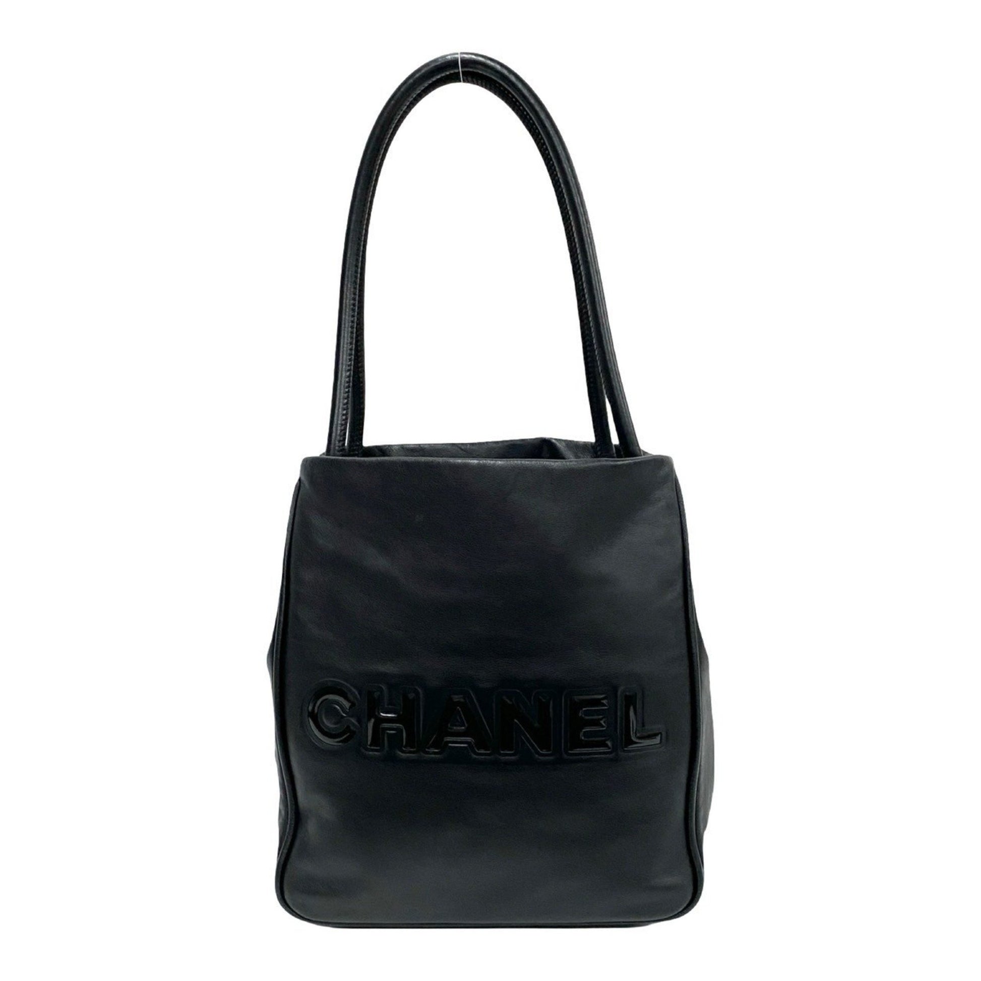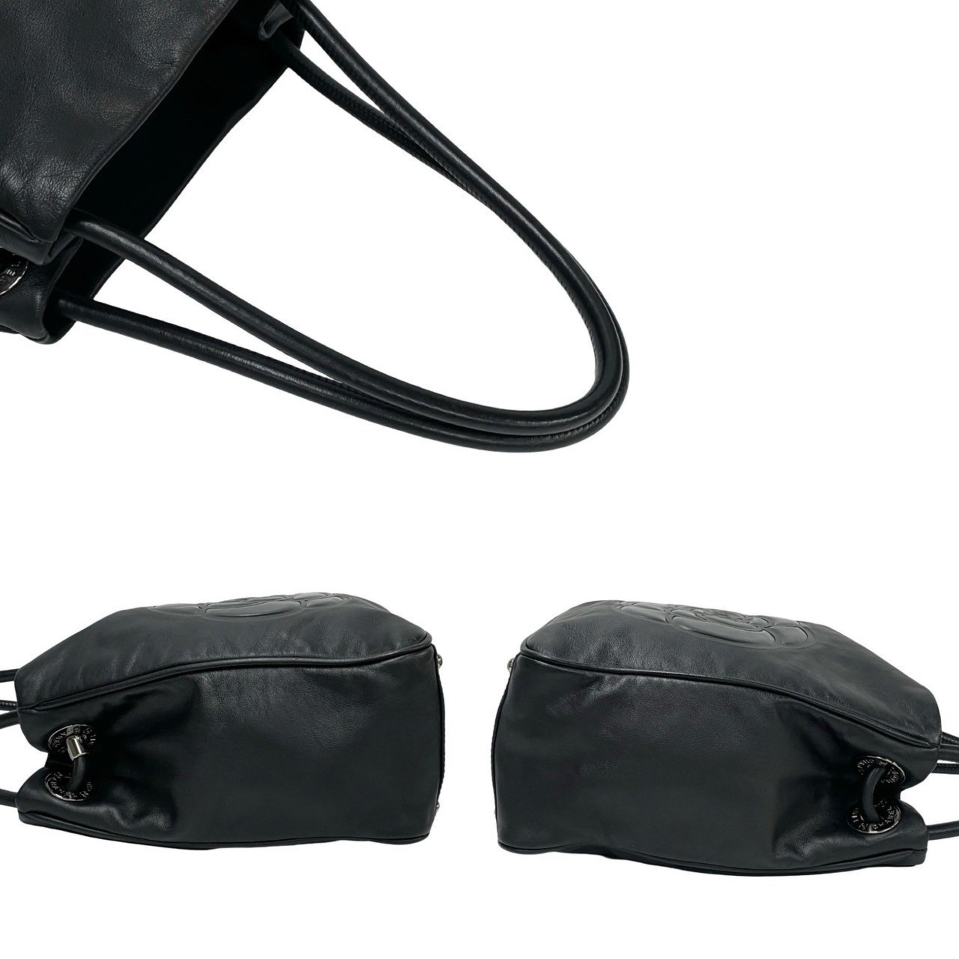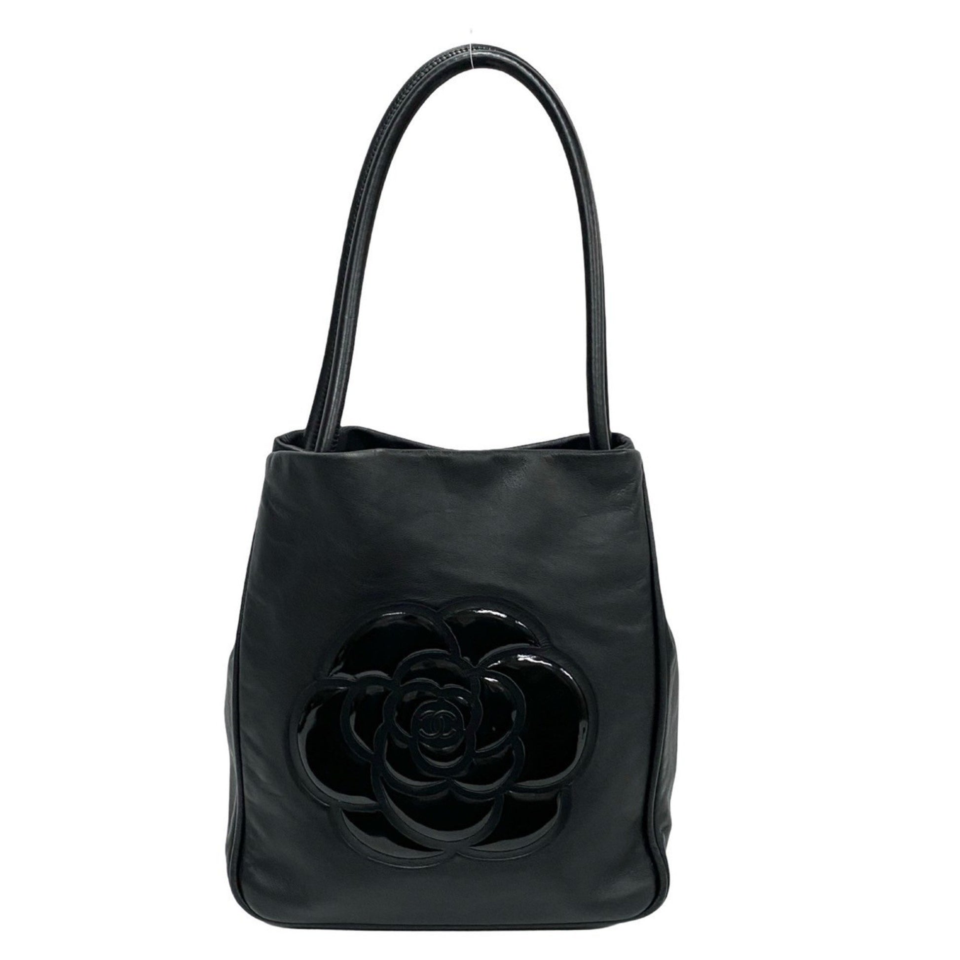 Chanel Camellia Logo Leather Tote Bag Handbag Black 29098