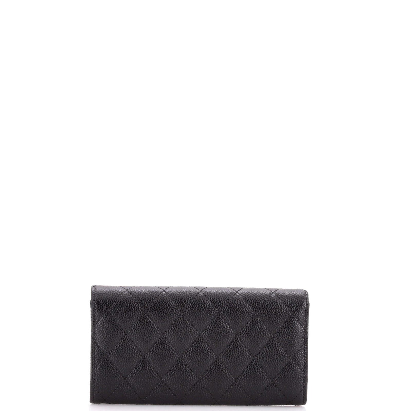 Chanel Cc Gusset Classic Flap Wallet Quilted Caviar Long
