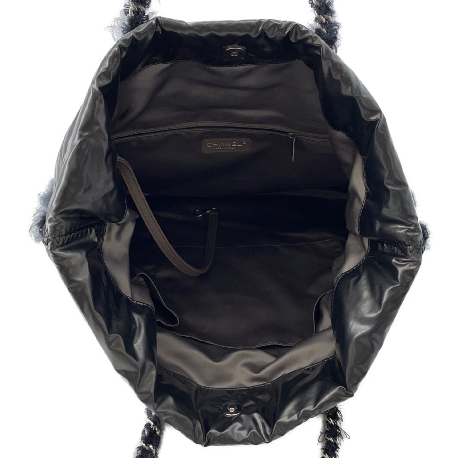 Chanel Chain Tote Bag Coco Mark Nylon Fur Chanel Black