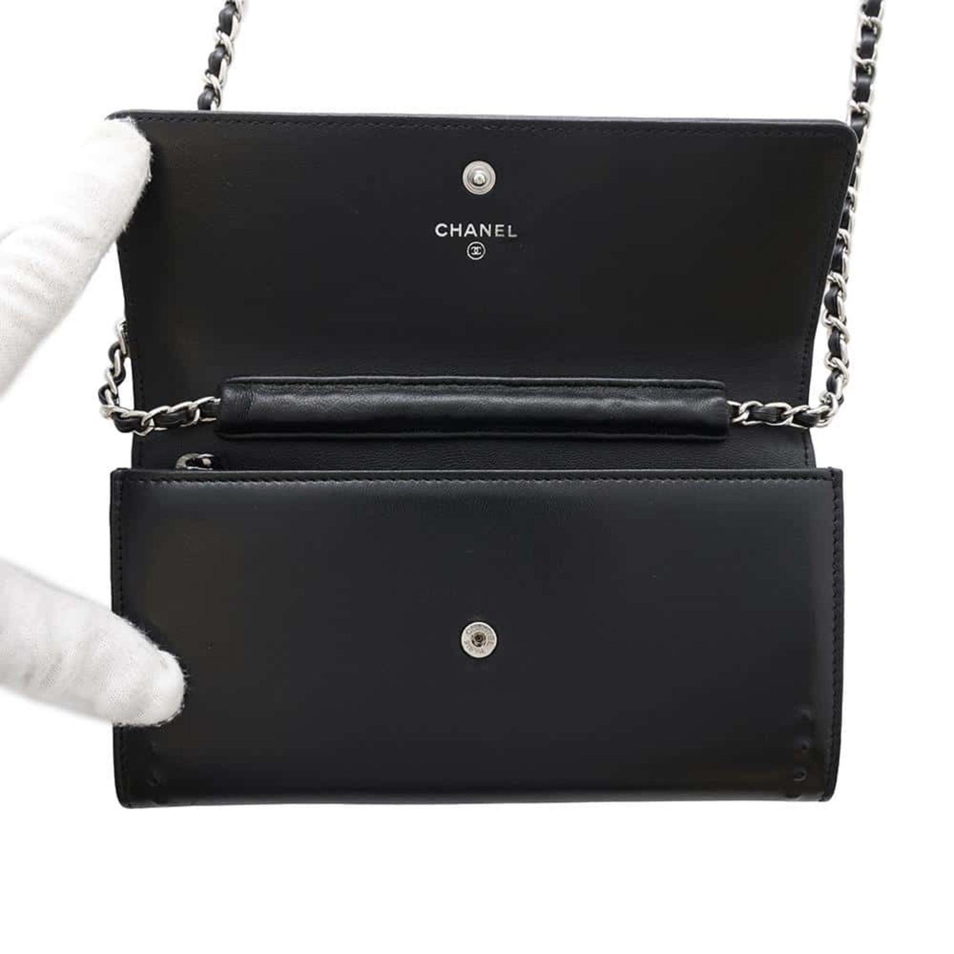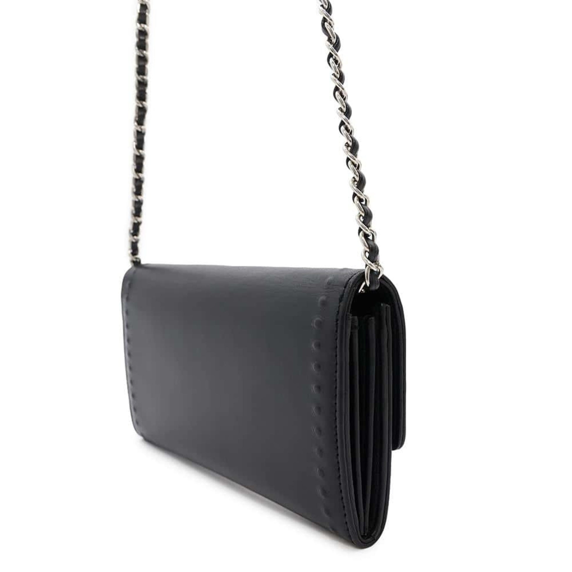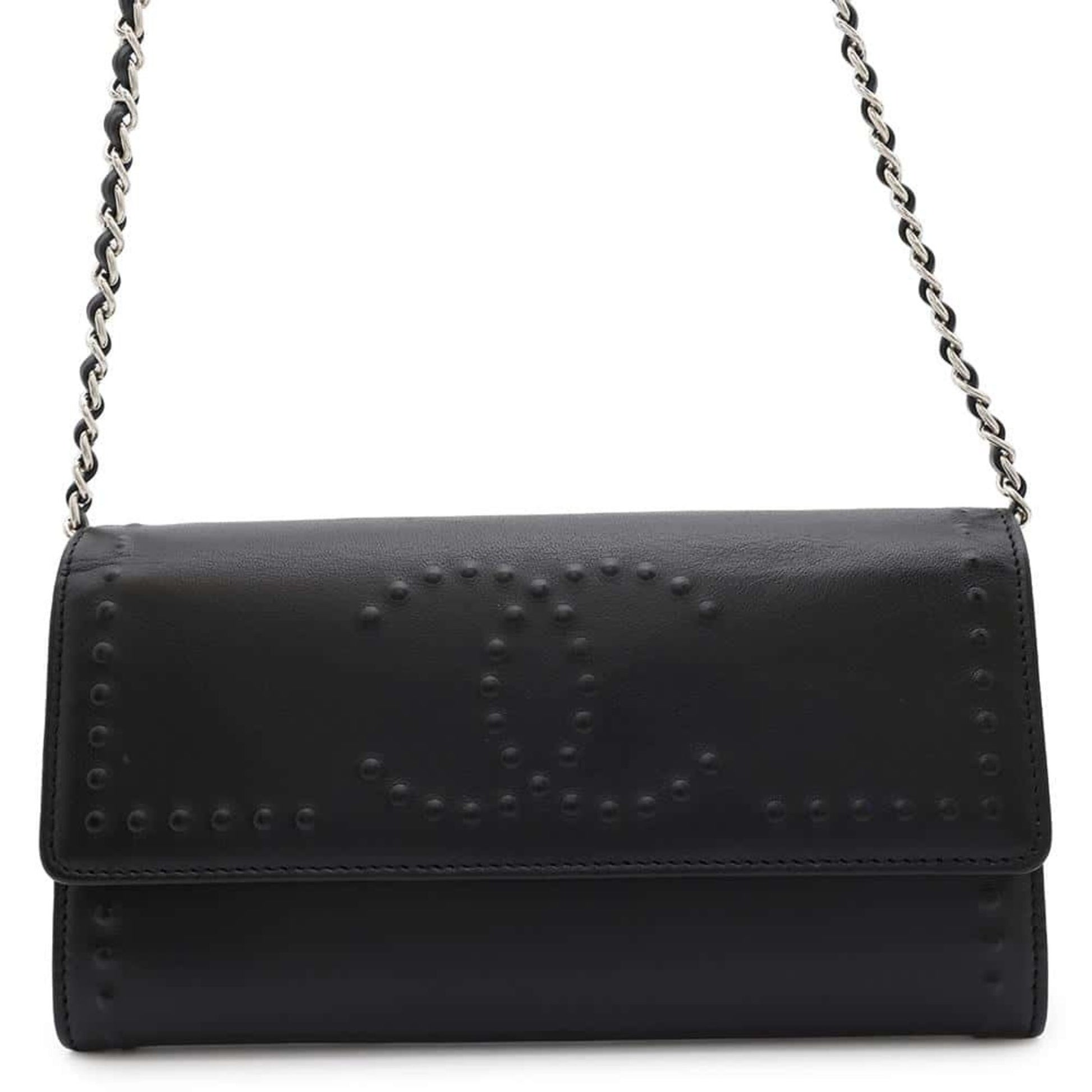 Chanel Chain Wallet Coco Mark Leather Chanel Black
