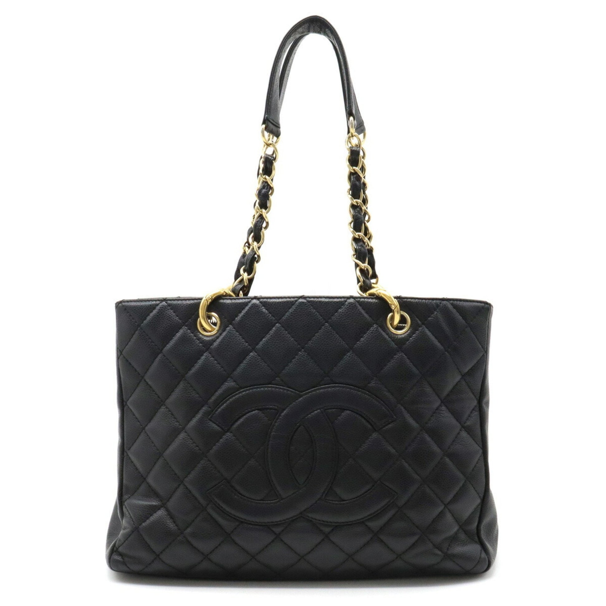 Chanel Chanel Matelasse Coco Mark Chain Tote Bag Shoulder Caviar Skin Leather Black A50995