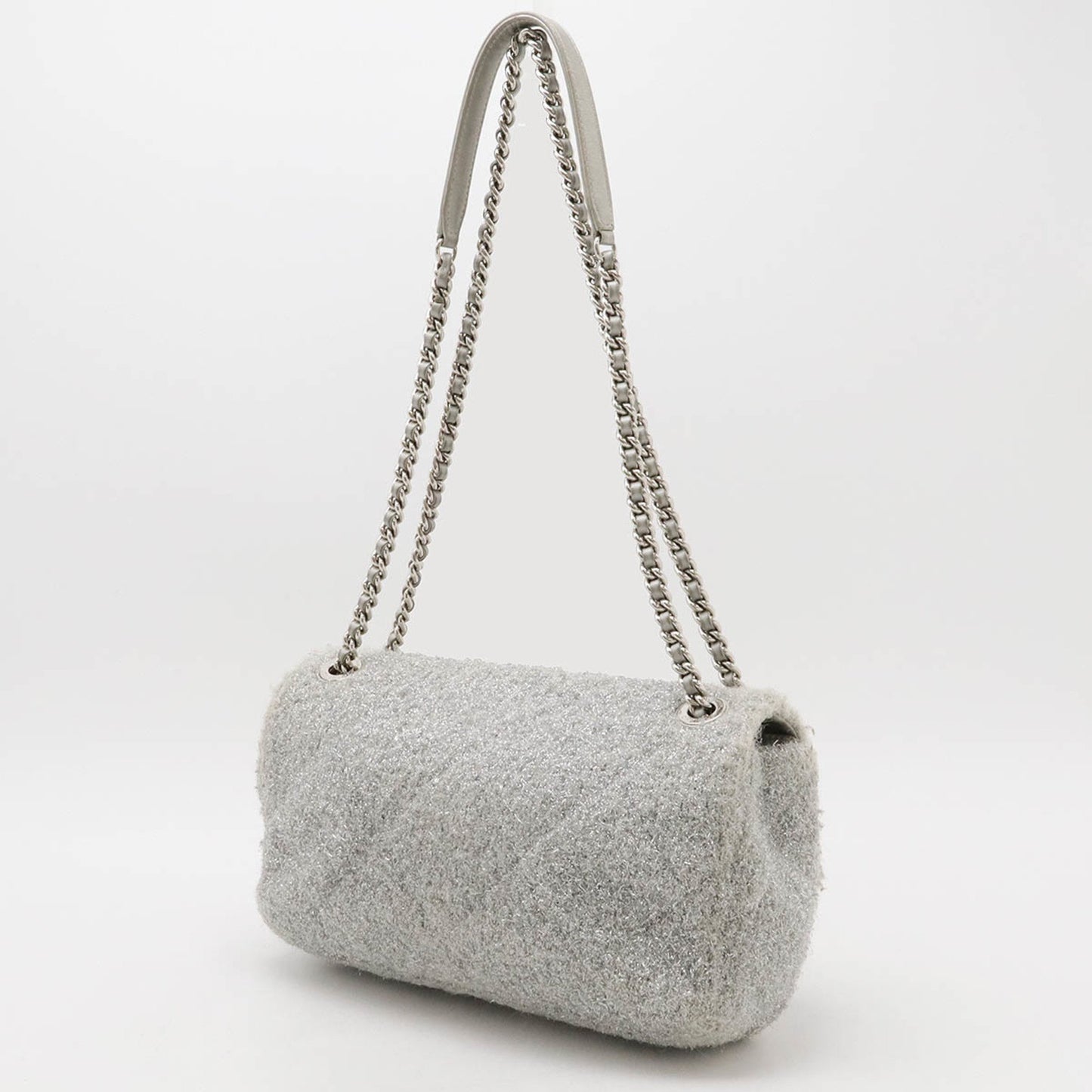 Chanel Chanel Pour Toe Glitter Coco Mark Chain Shoulder Bag Fabric Leather Silver