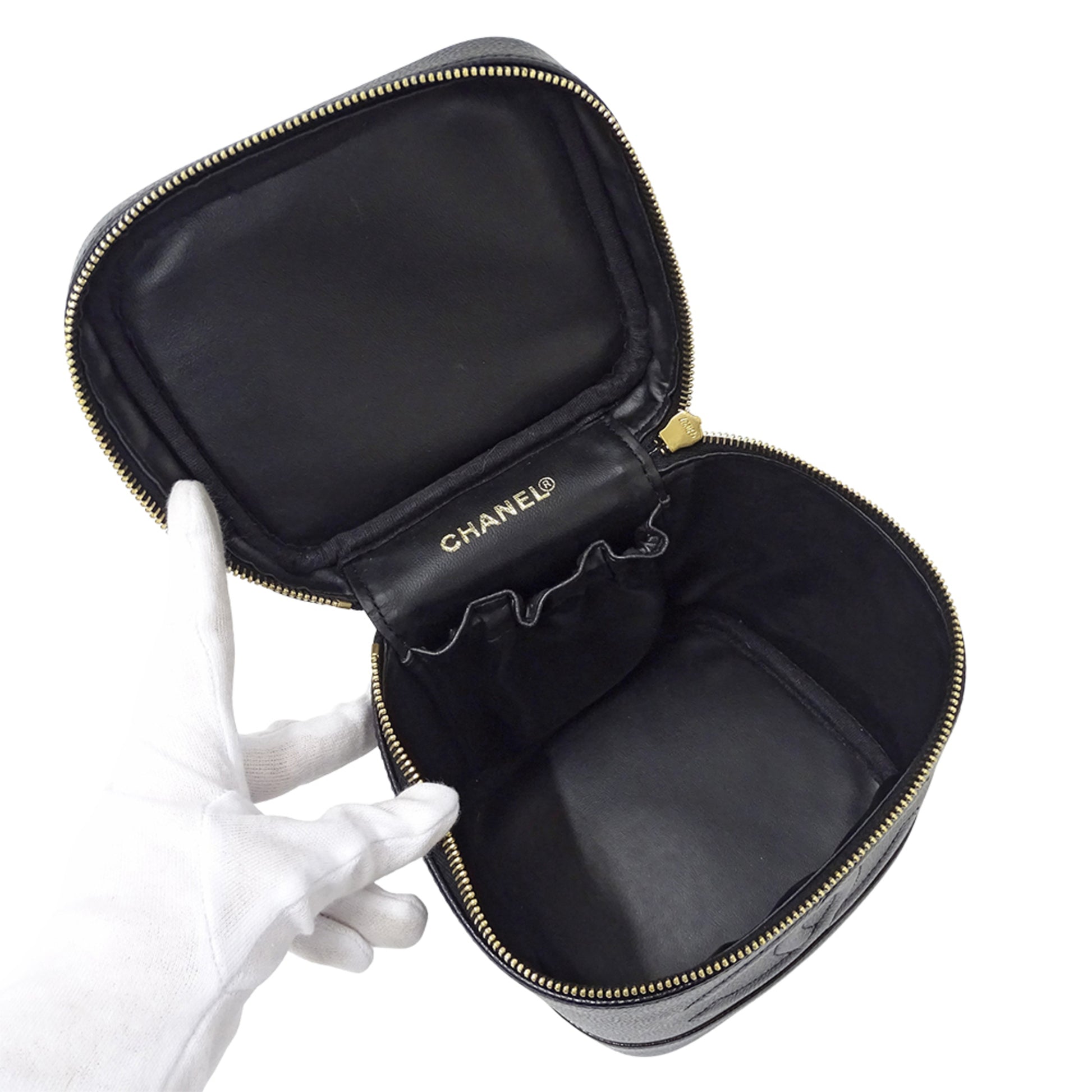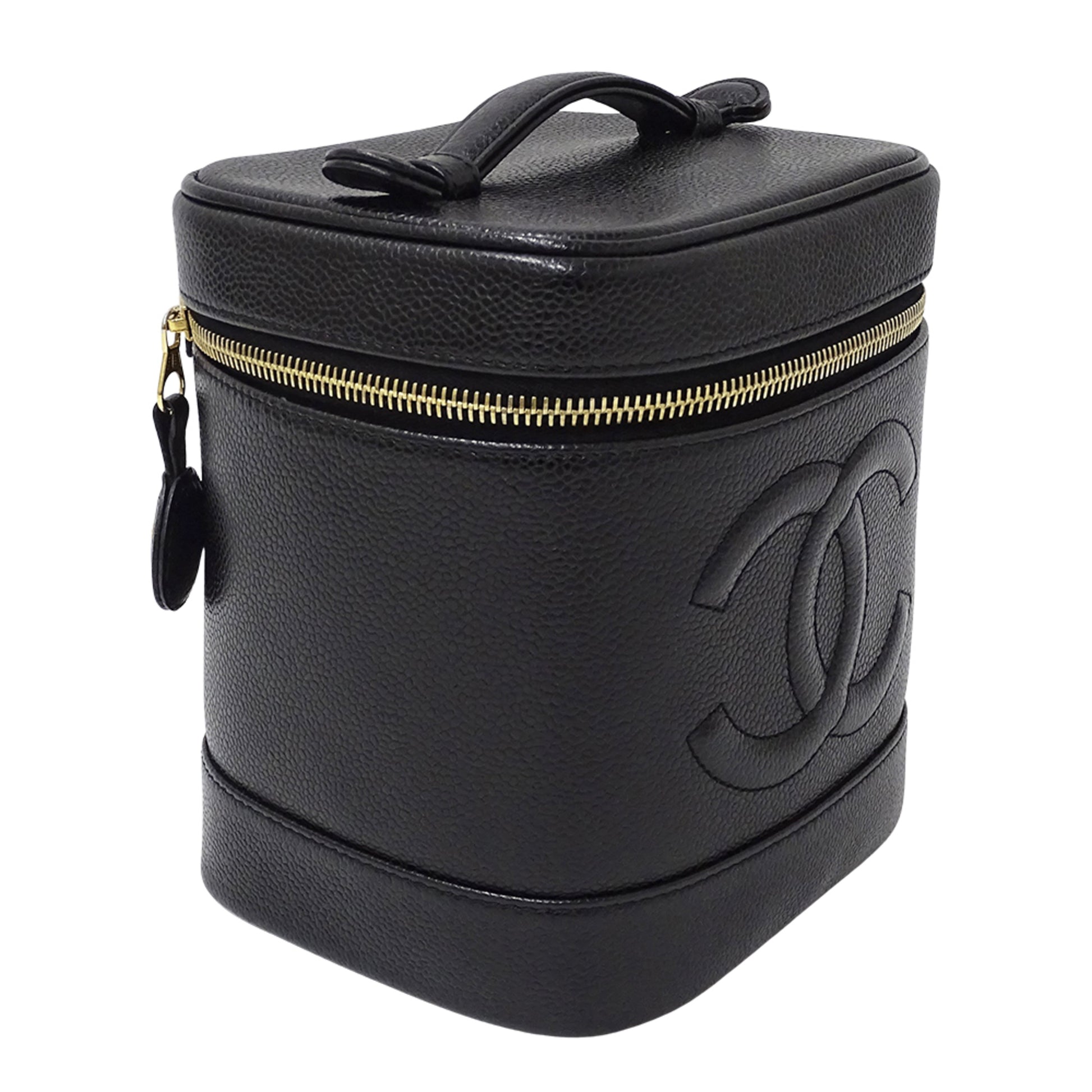Chanel Chanel Women'S Vanity Bag Handbag In Black Caviar Leather With Gold Hardware