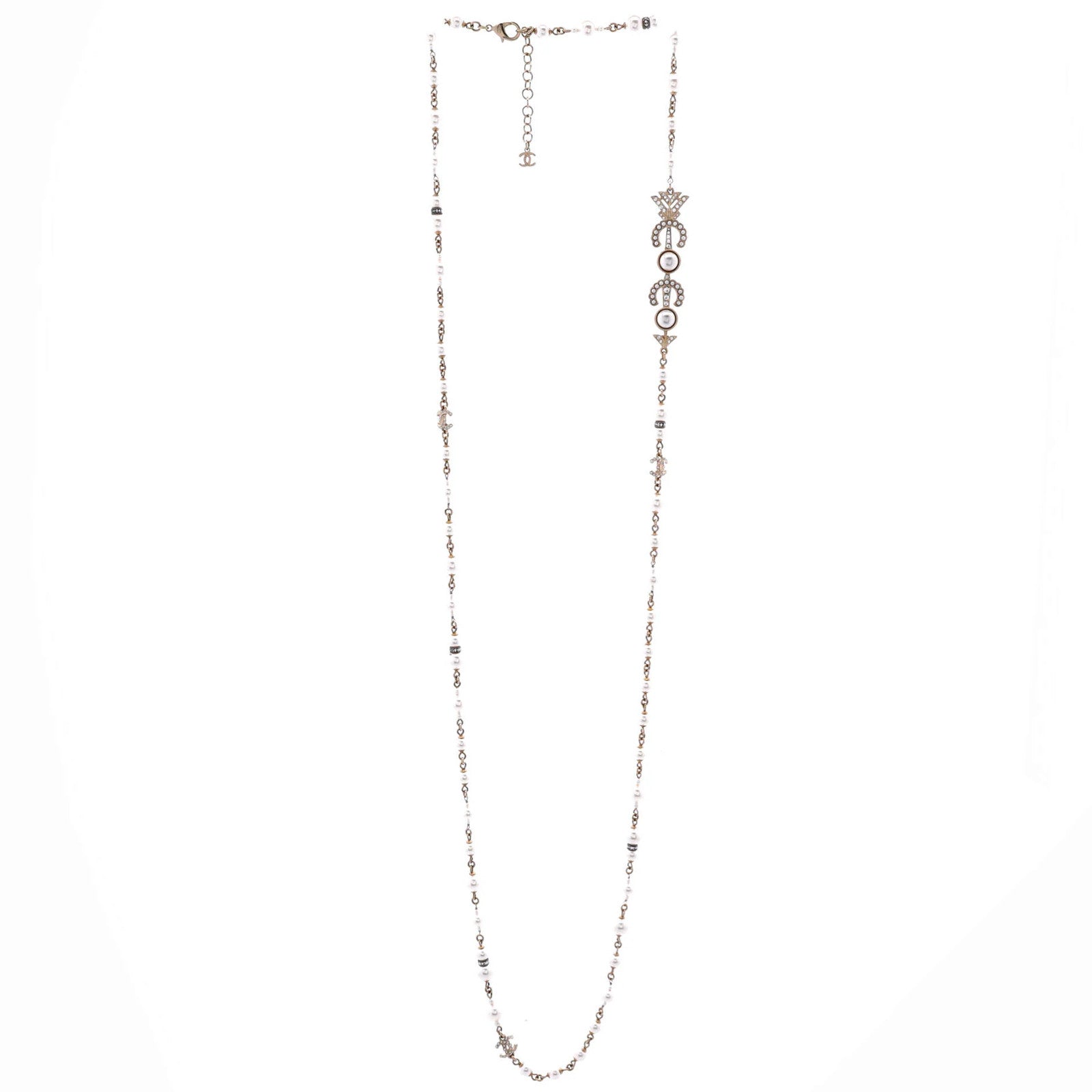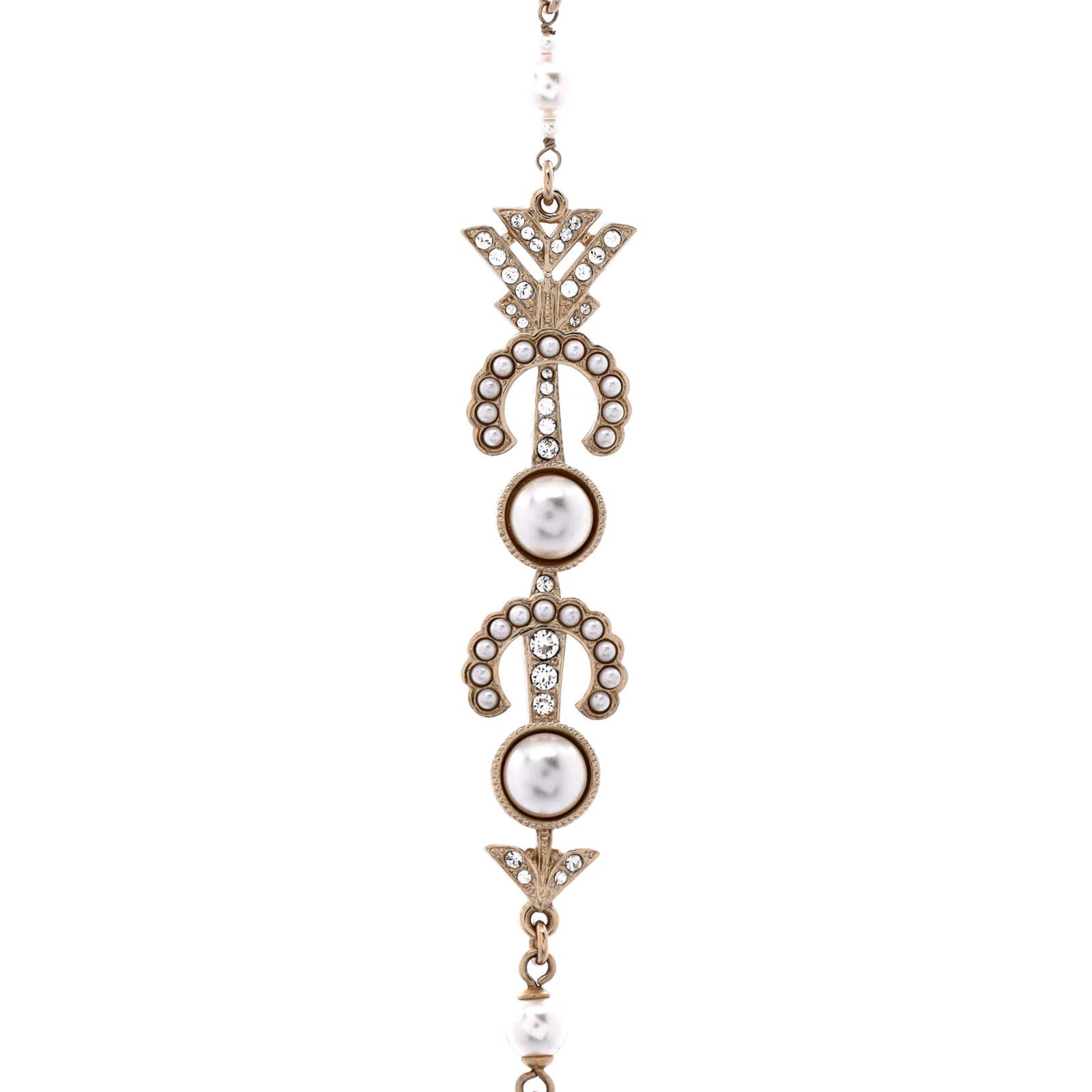 Chanel Coco Arrow Cc Station Long Necklace Metal And Faux Pearls With Crystals