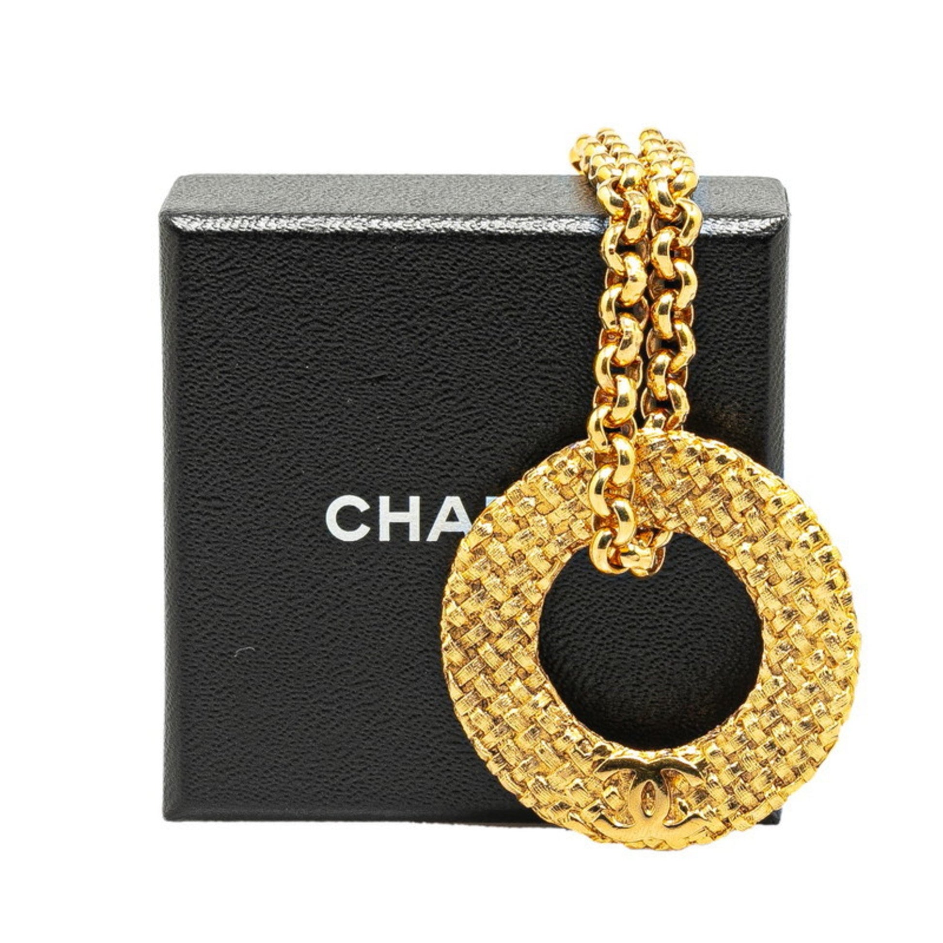 Chanel Coco Mark Chain Circle Pendant Necklace Gold Plated