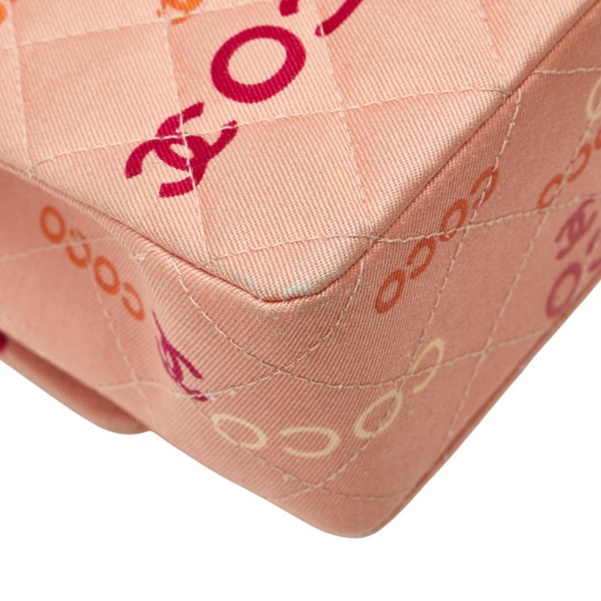 Chanel Coco Mark Coco Print Double Flap Chain Shoulder Bag Salmon Pink Multicolor Canvas