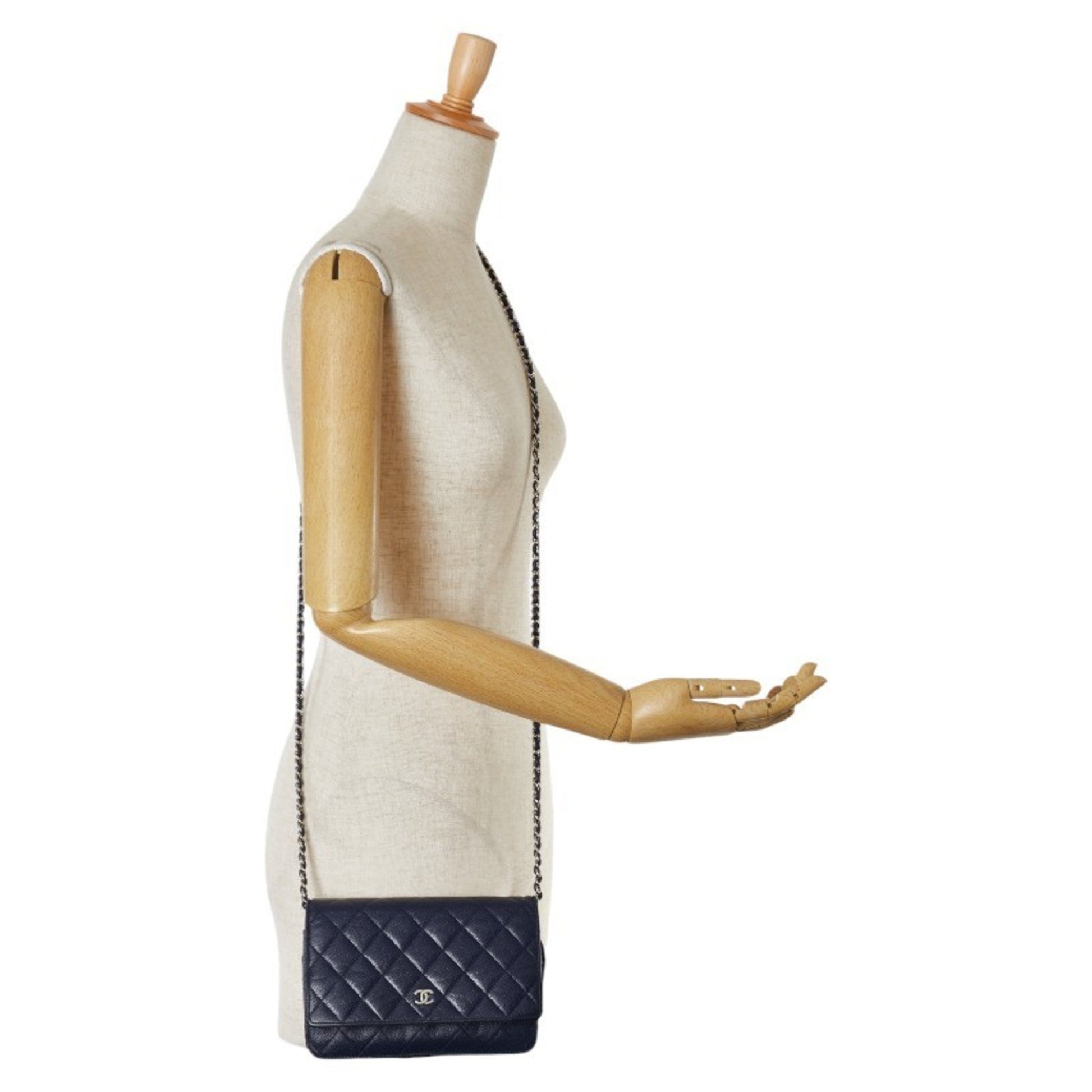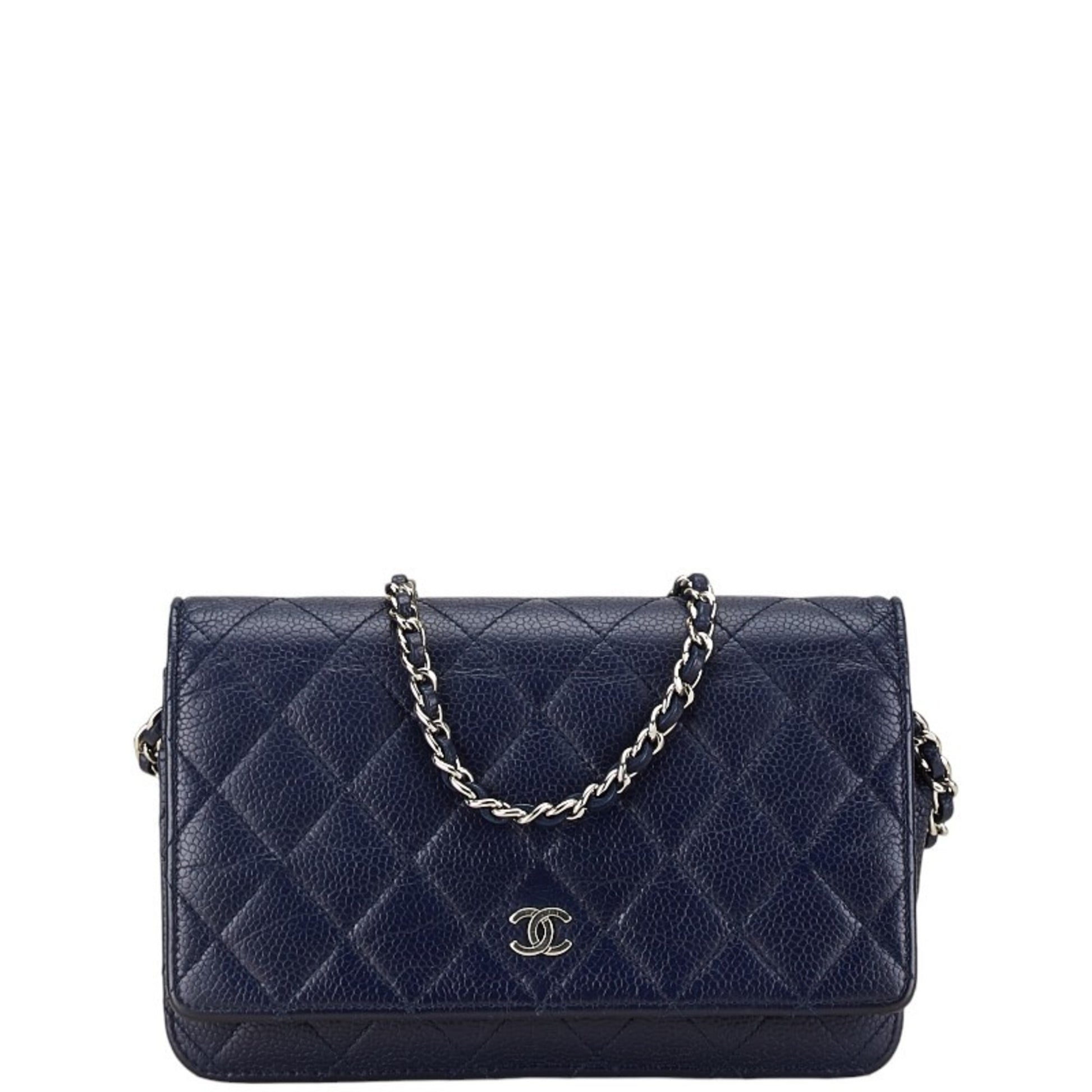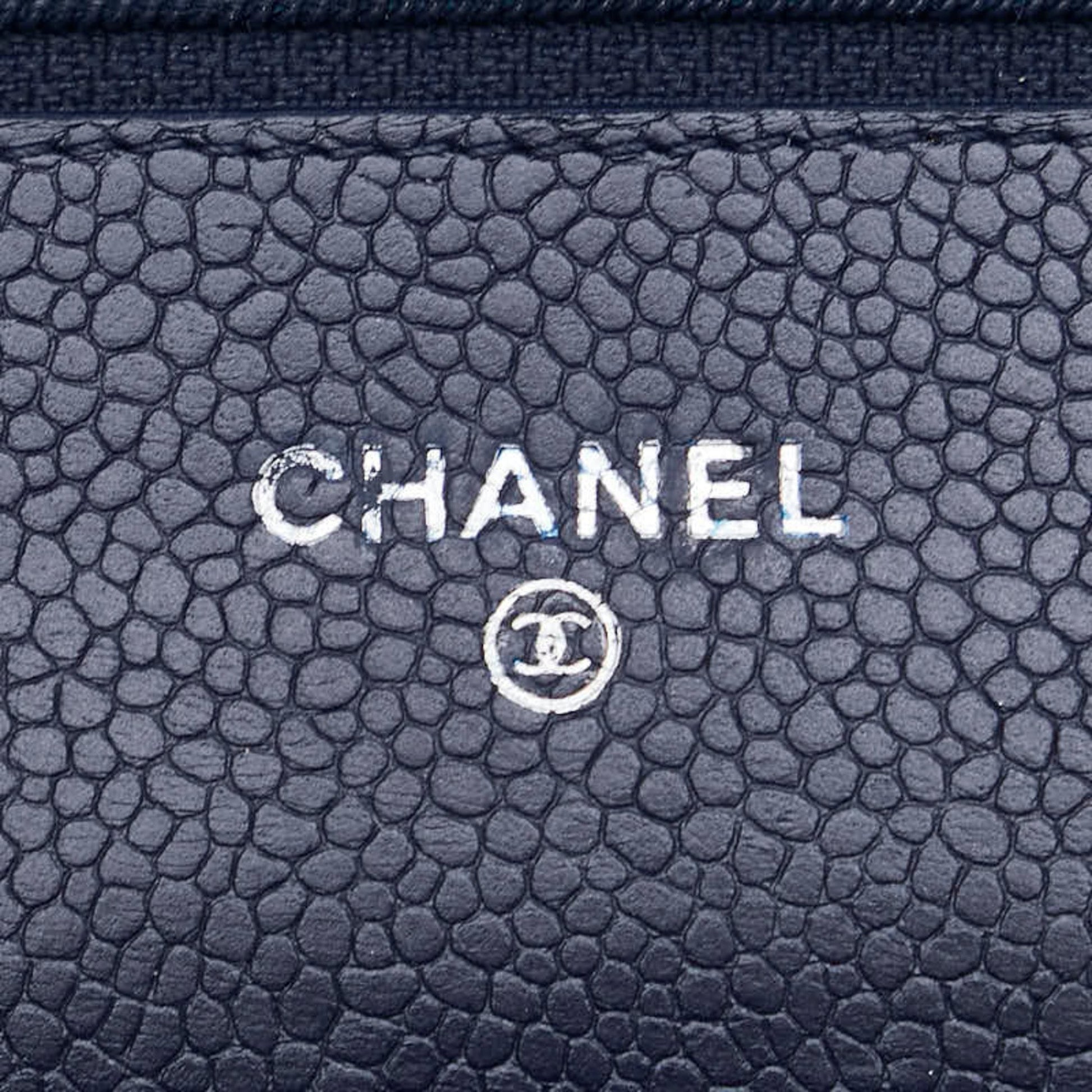 Chanel Coco Mark Matelasse Long Wallet Chain Bag Navy Caviar Skin