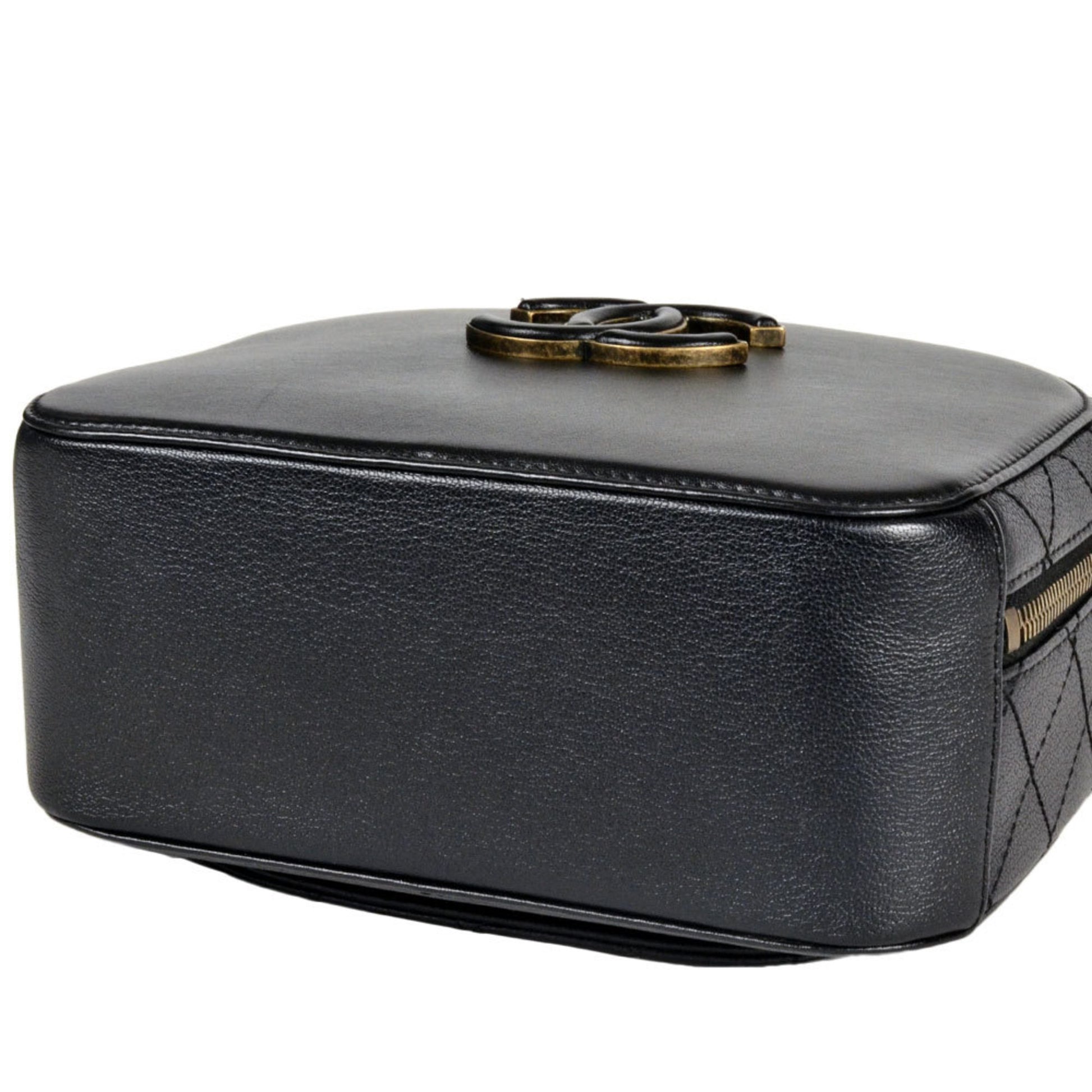 Chanel Coco Mark Matelasse Vanity Bag Handbag Lambskin Black Shoulder