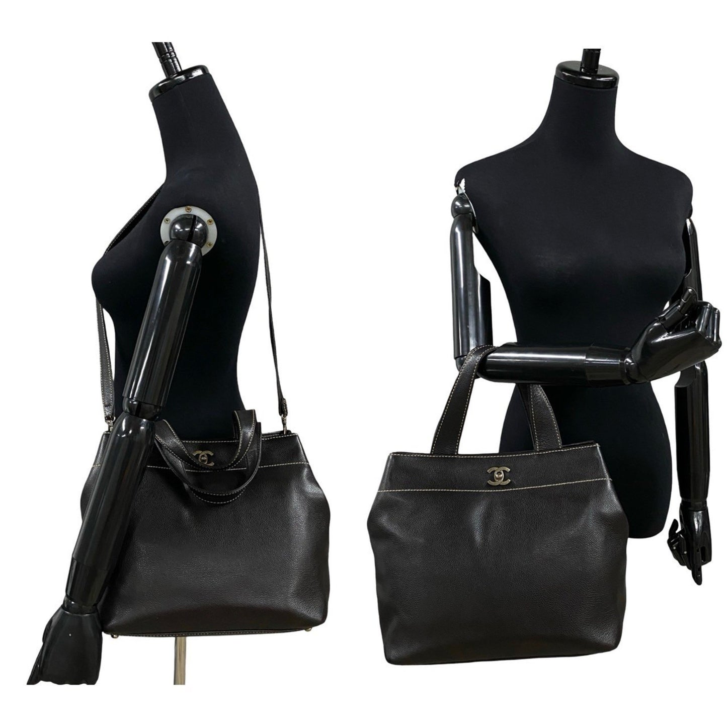 Chanel Coco Mark Turnlock Caviar Leather 2-Way Shoulder Bag/Handbag Brown 39868