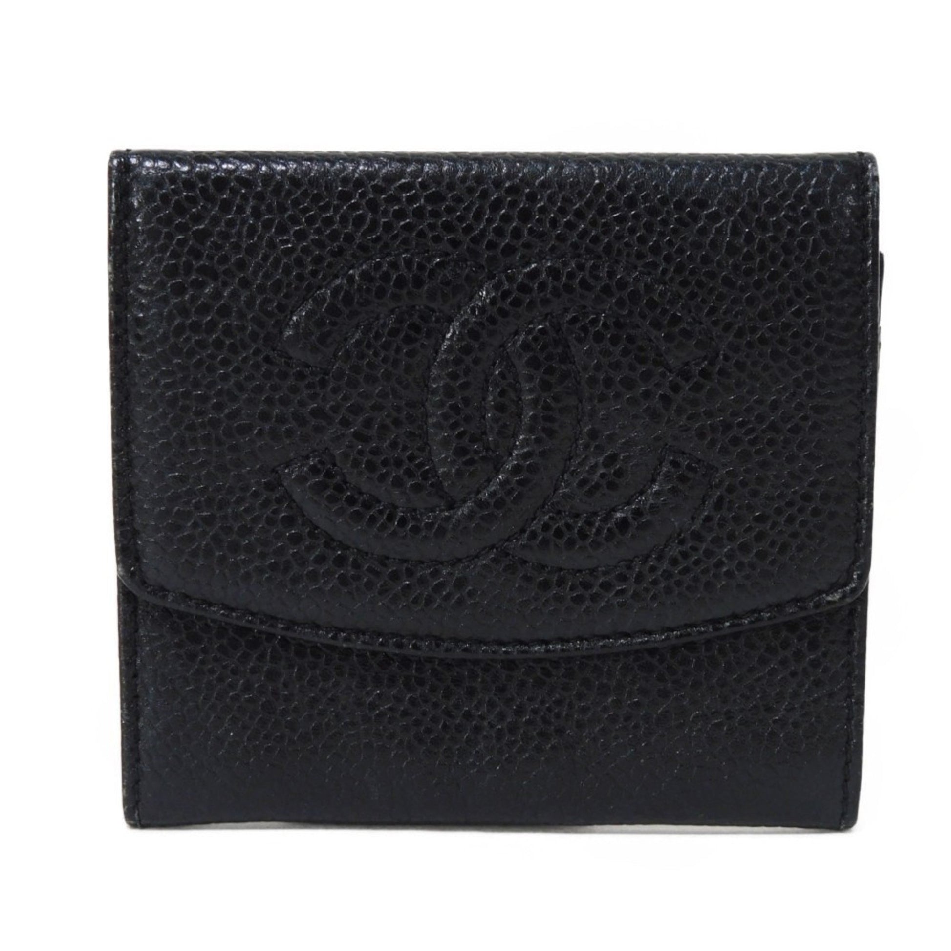 Chanel Coin Case Compact Flap Coco Mark Cc 3Rd Series Deca Caviar Skin Black