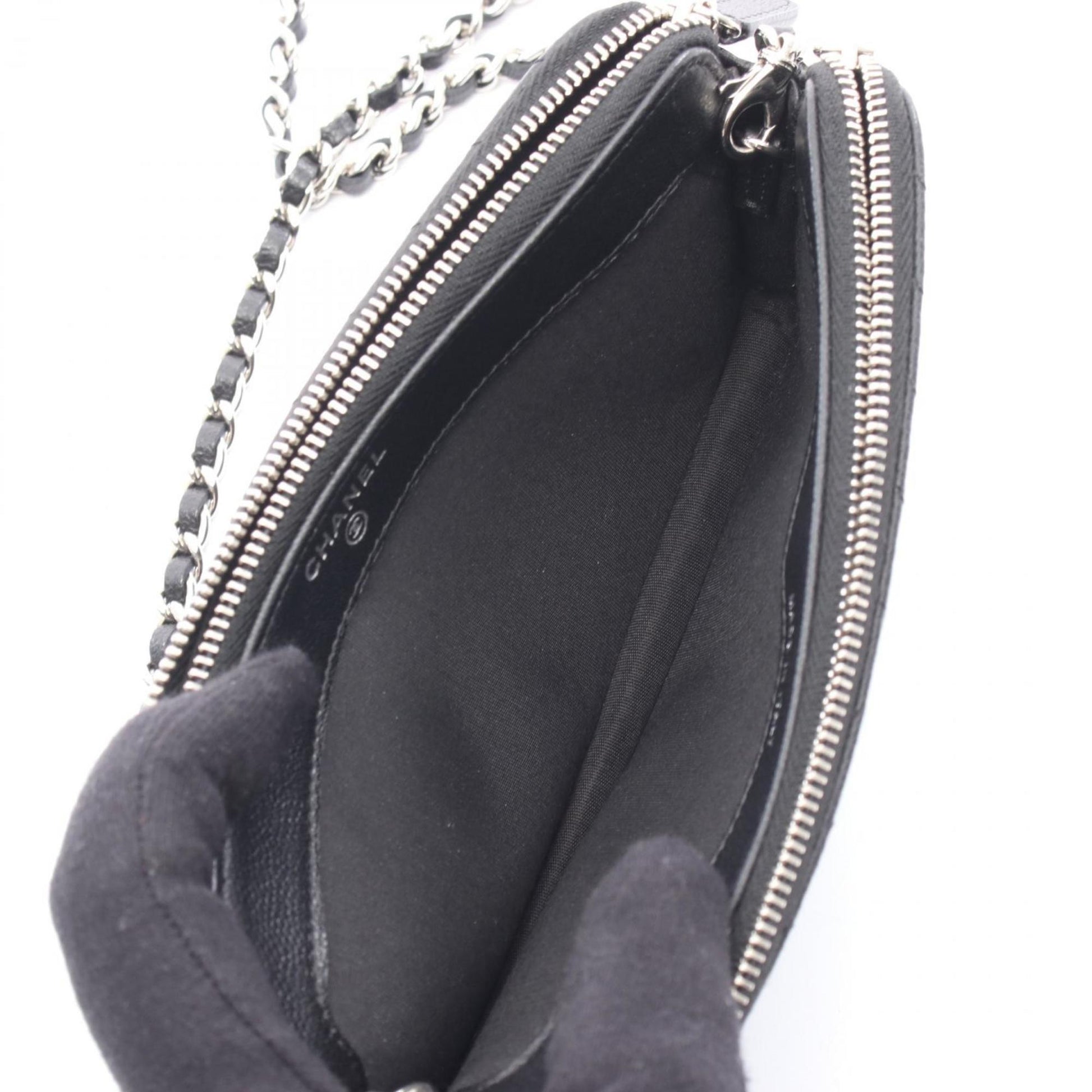Chanel Double Zip Shoulder Bag In Grained Calfskin Leather