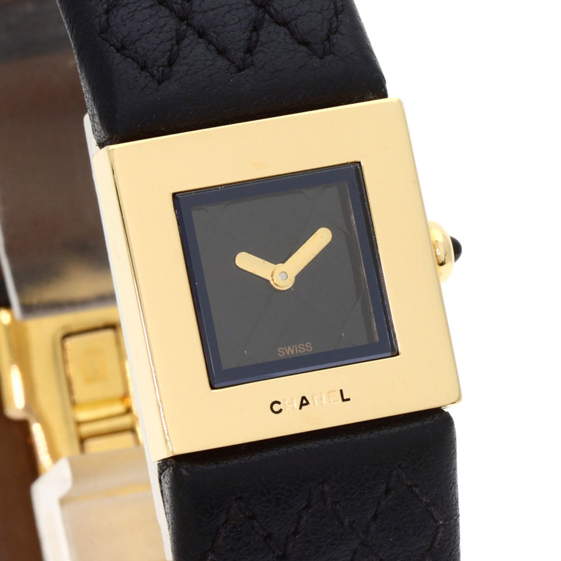 Chanel H0111 Matelasse Watch 18K Yellow Gold Leather