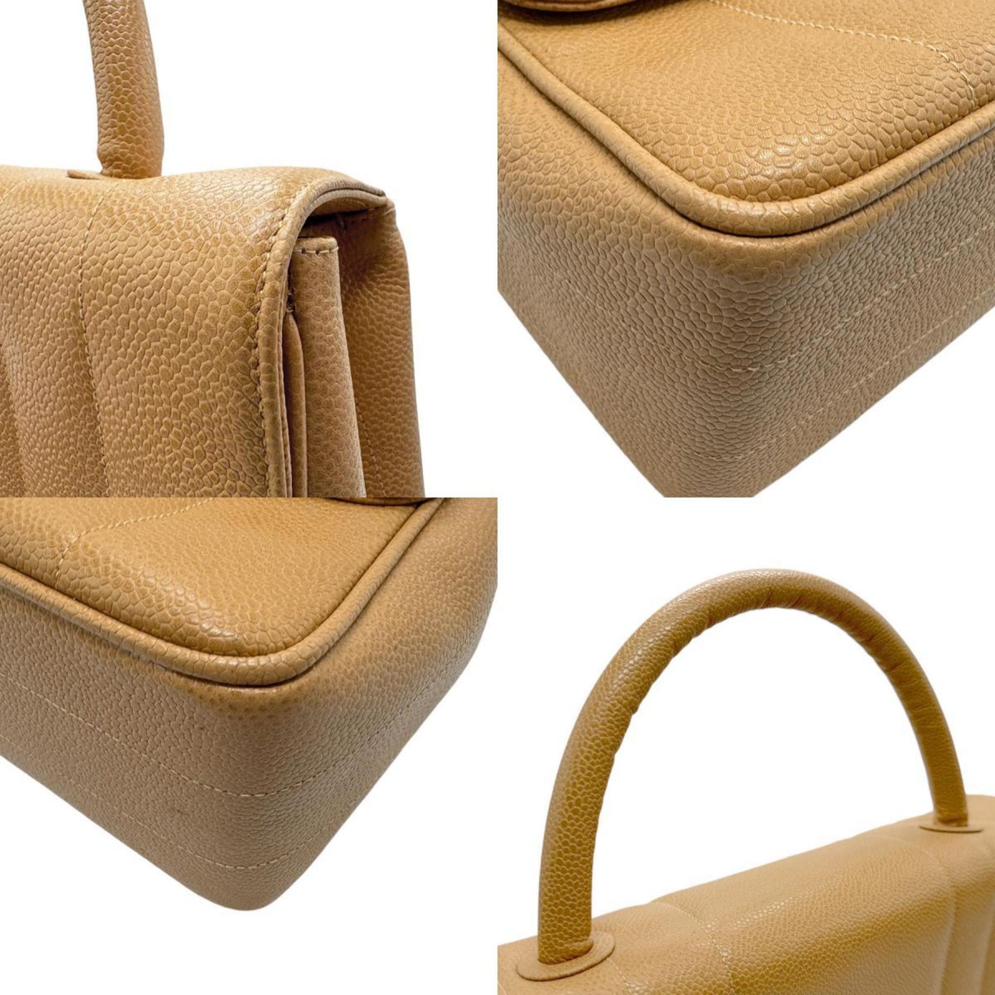 Chanel Handbag Caviar Skin Leather Beige Gold