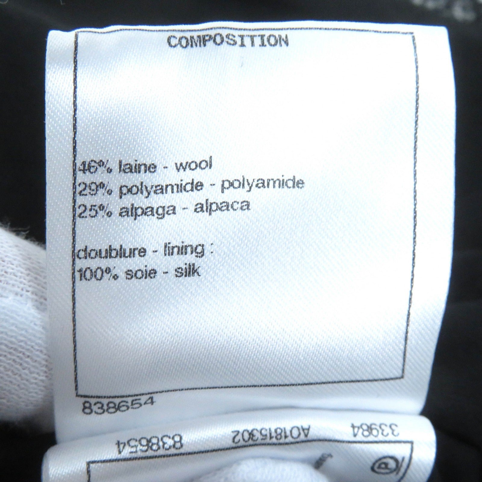 Material: Outer: 46% wool, Outer: 29% polyamide (nylon), Outer: 25% alpaca, Lining: 100% silk