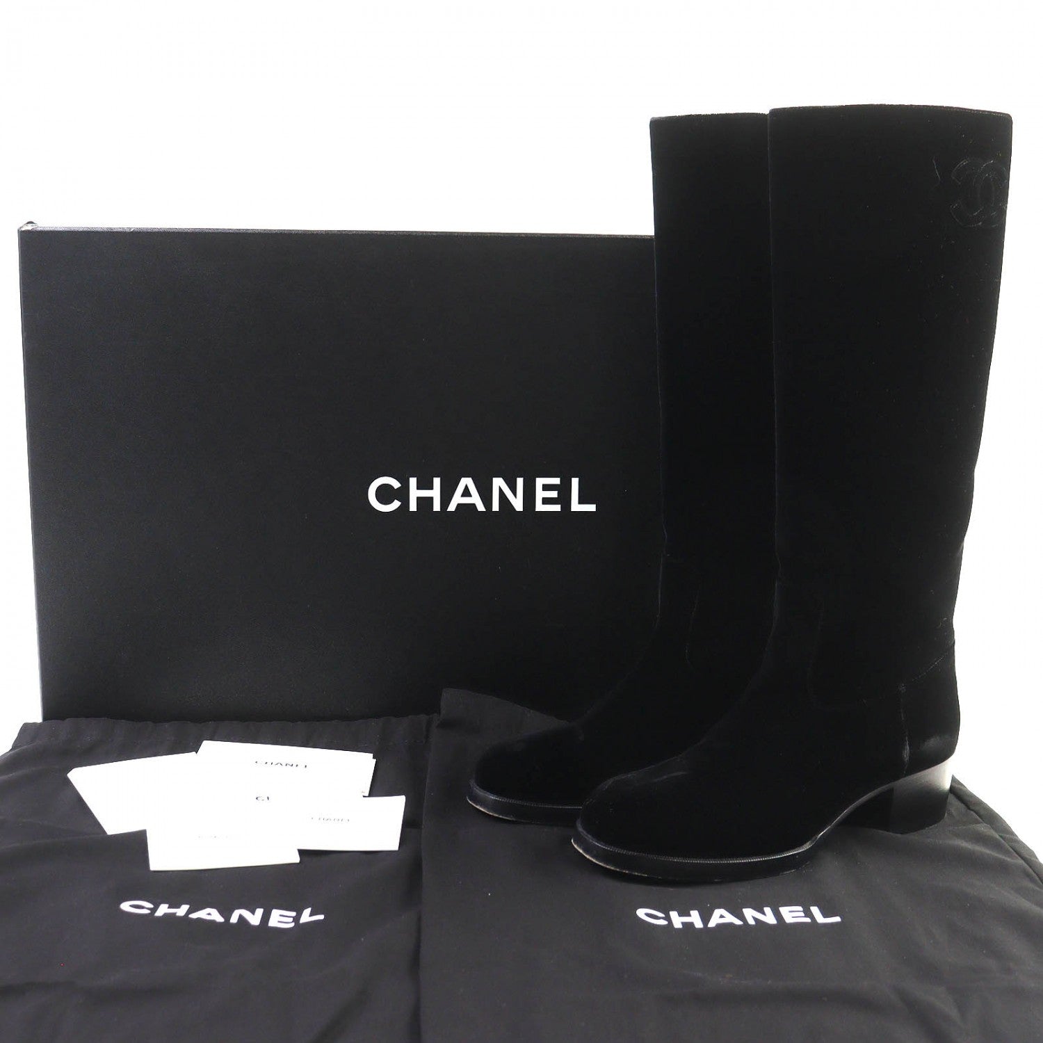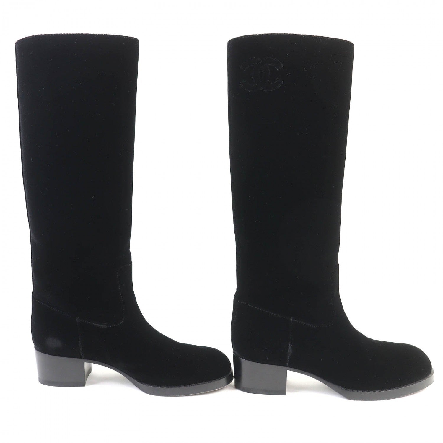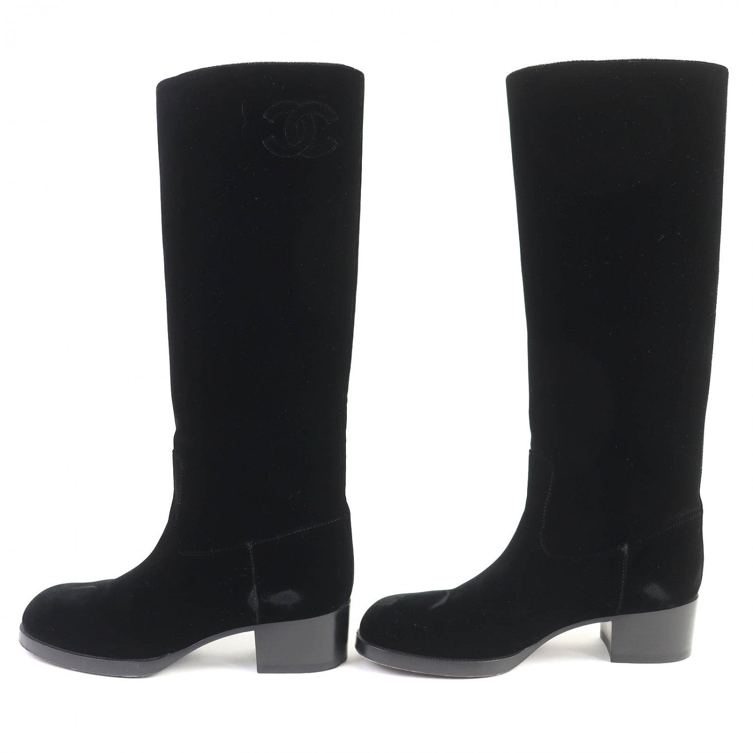 Chanel Knee-High Boots 21A G37985 Velor Black 36.5