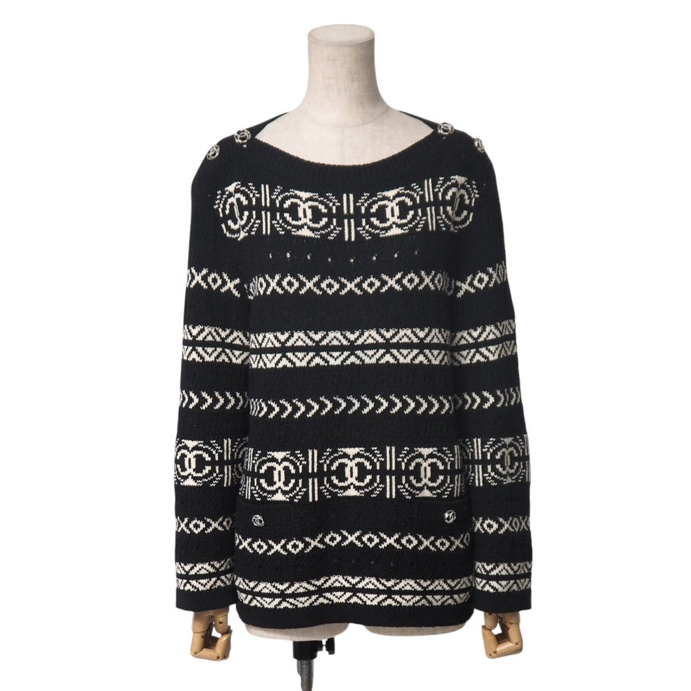Chanel Knit Knit Black X White Type P63046 Women 36