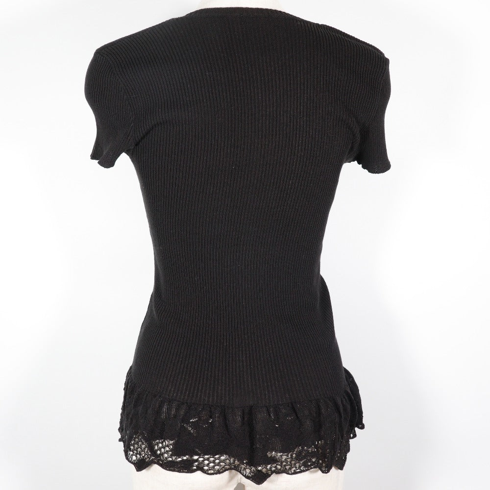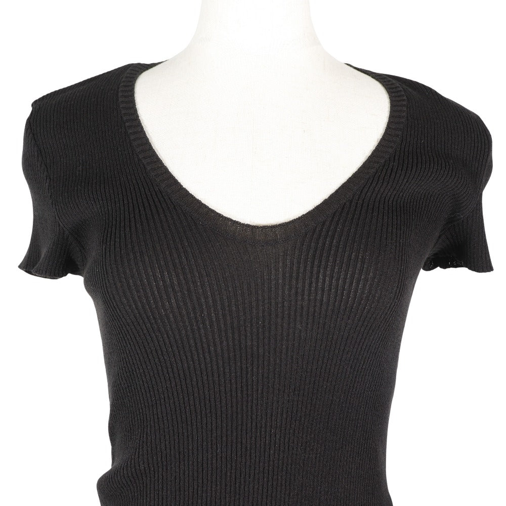 Chanel Knit P28461K00111 06P Cotton, Nylon Black Summer Knit Coco Mark Short Sleeve Women 38