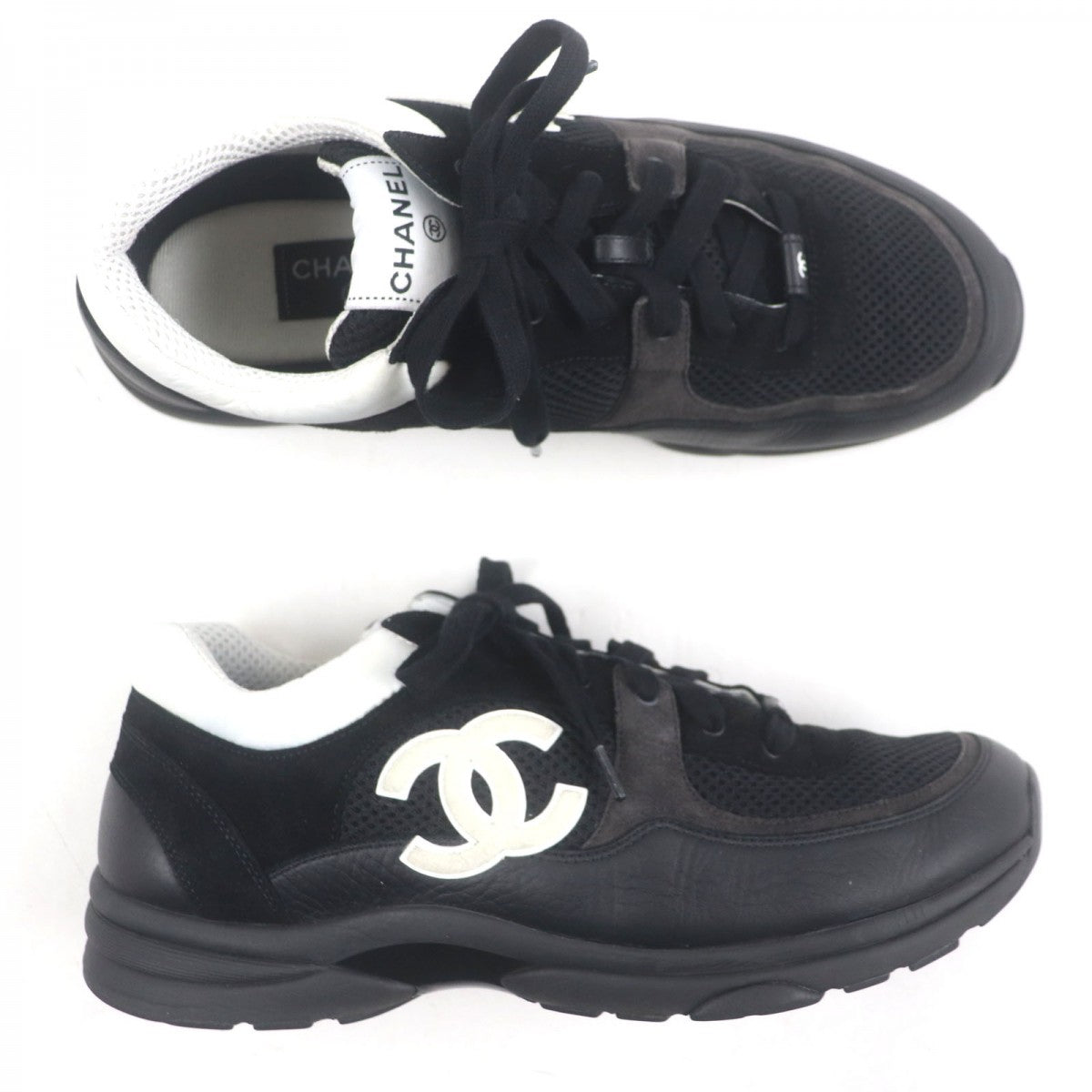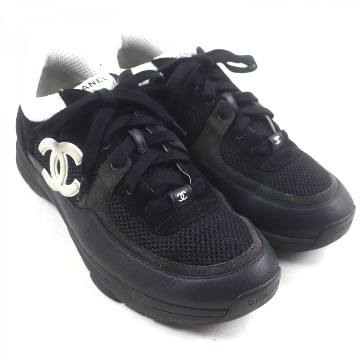 Chanel Low Cut Sneakers G38301 Mesh Black White 44