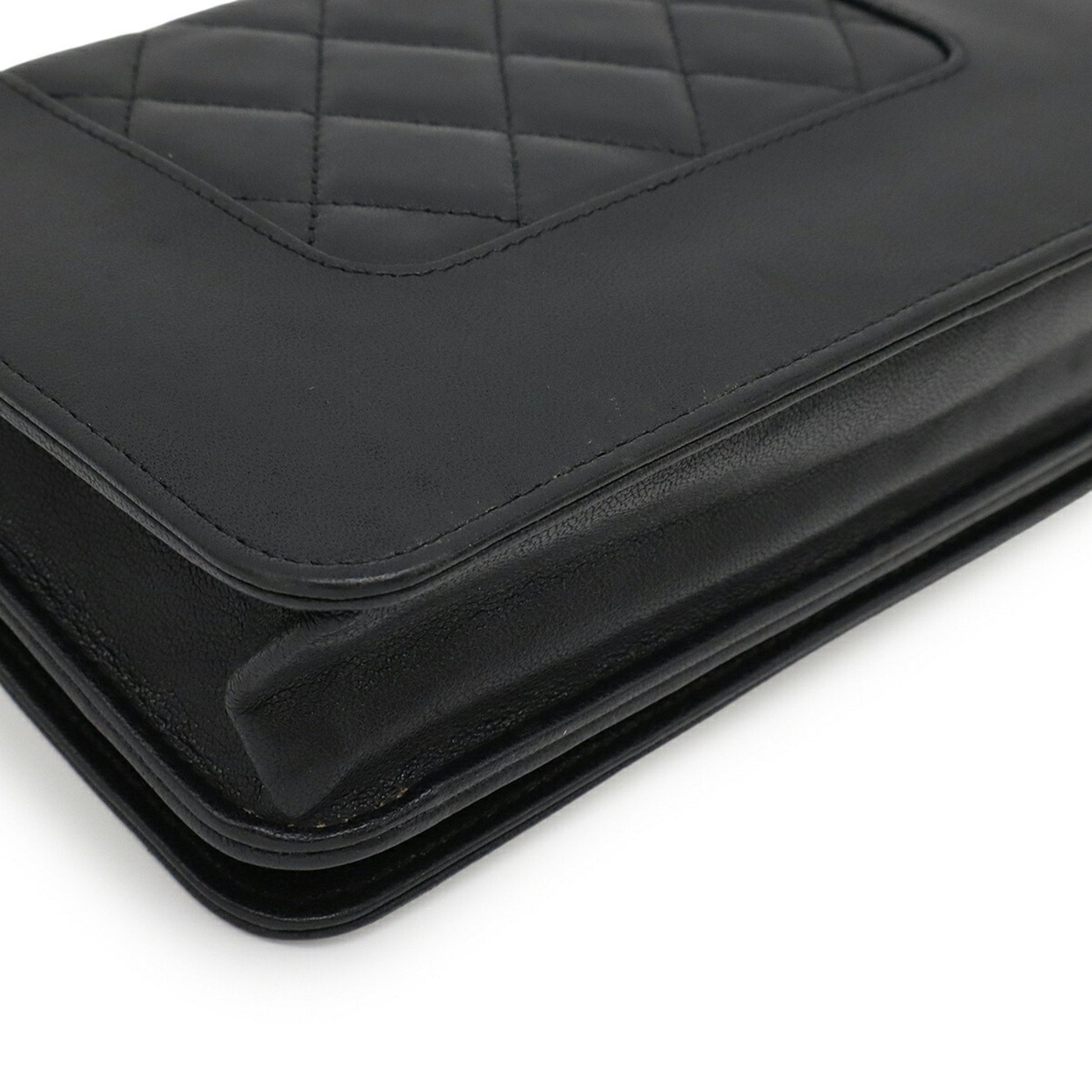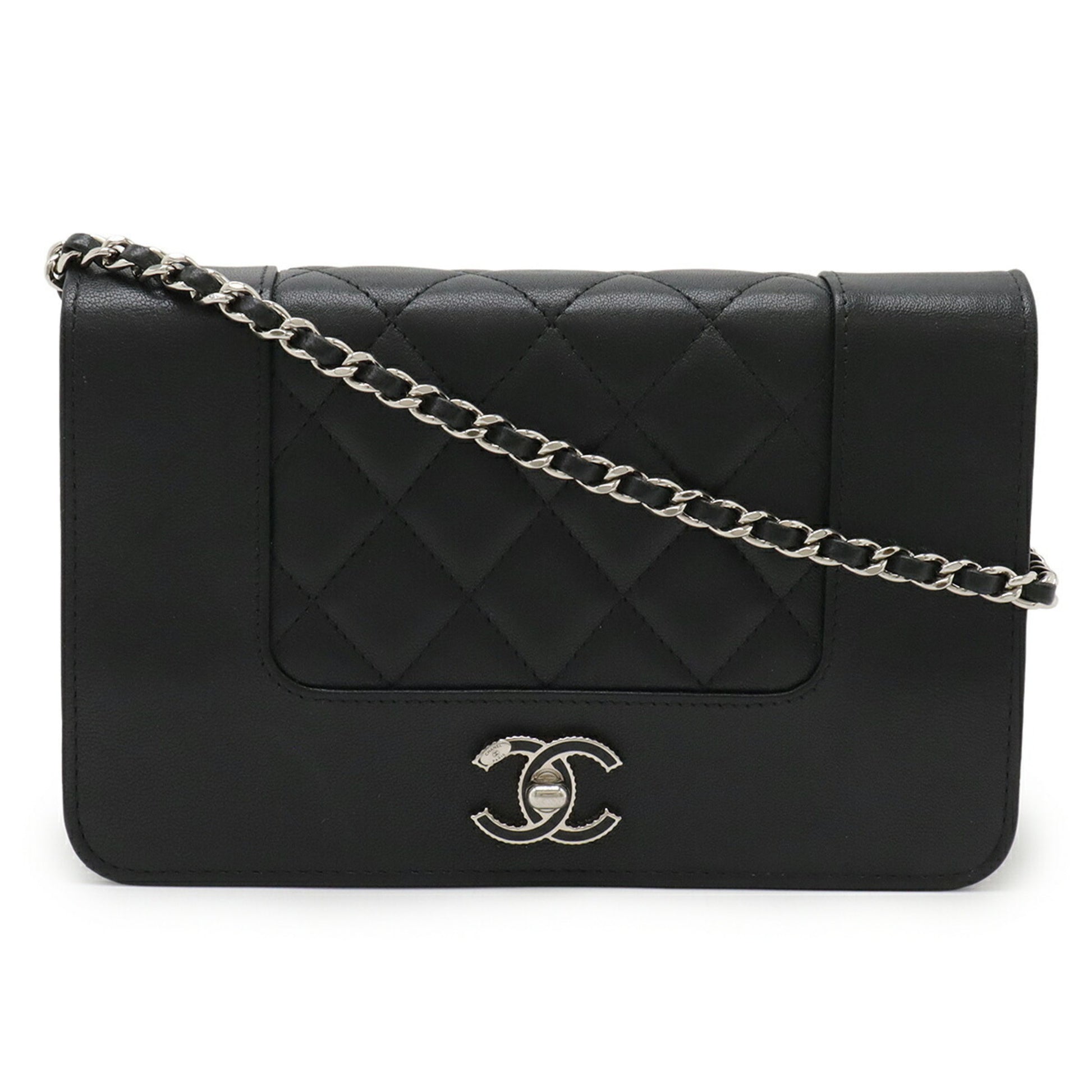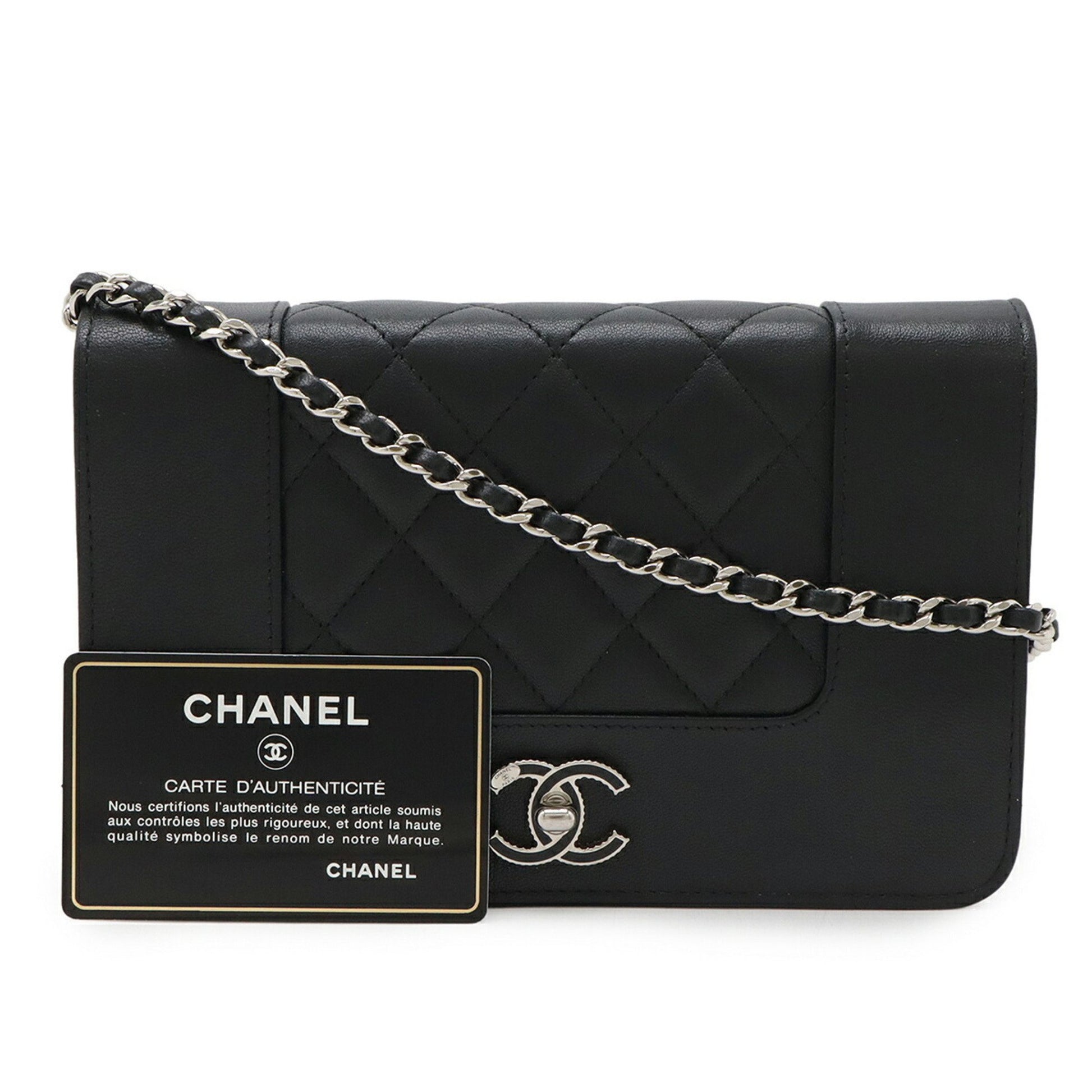 Chanel Mademoiselle Matelasse Chain Wallet Shoulder Bag Pochette Leather Black A80972