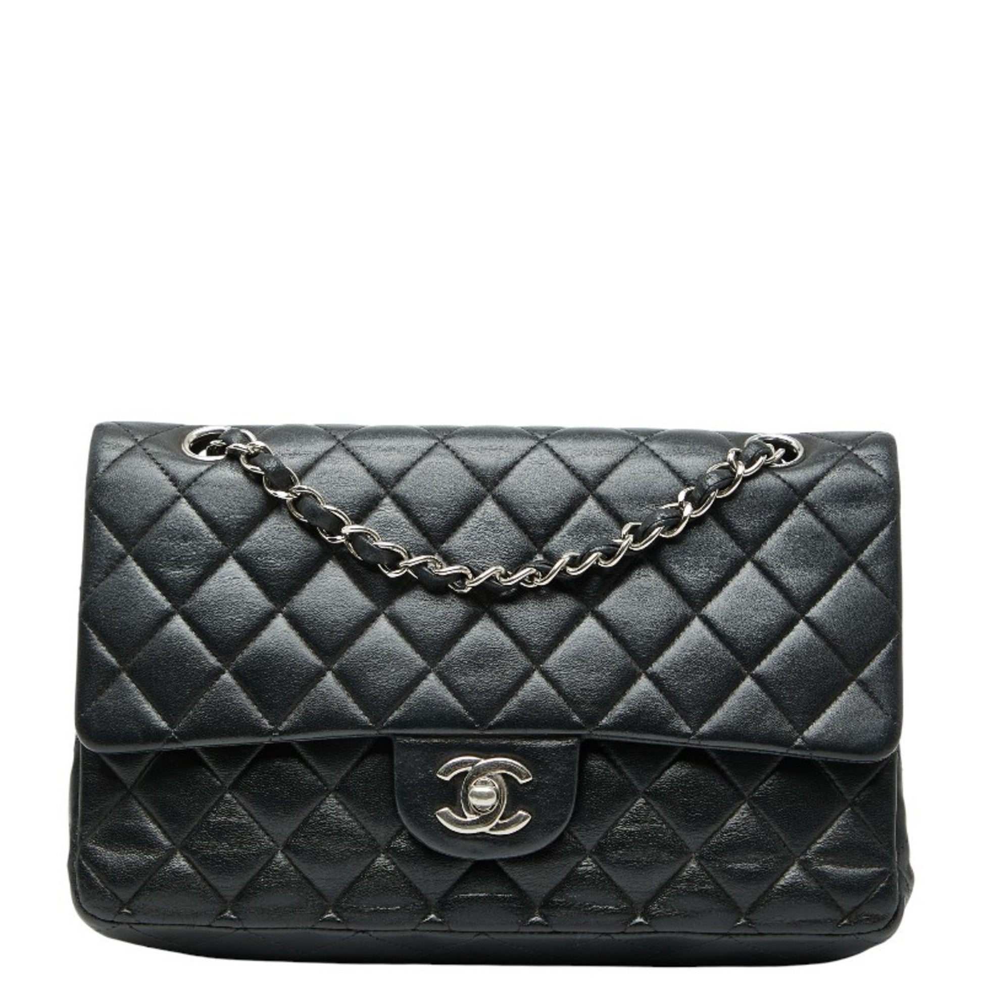 Chanel Matelasse 25 Coco Mark Double Flap Chain Shoulder Bag In Black With Silver Hardware And