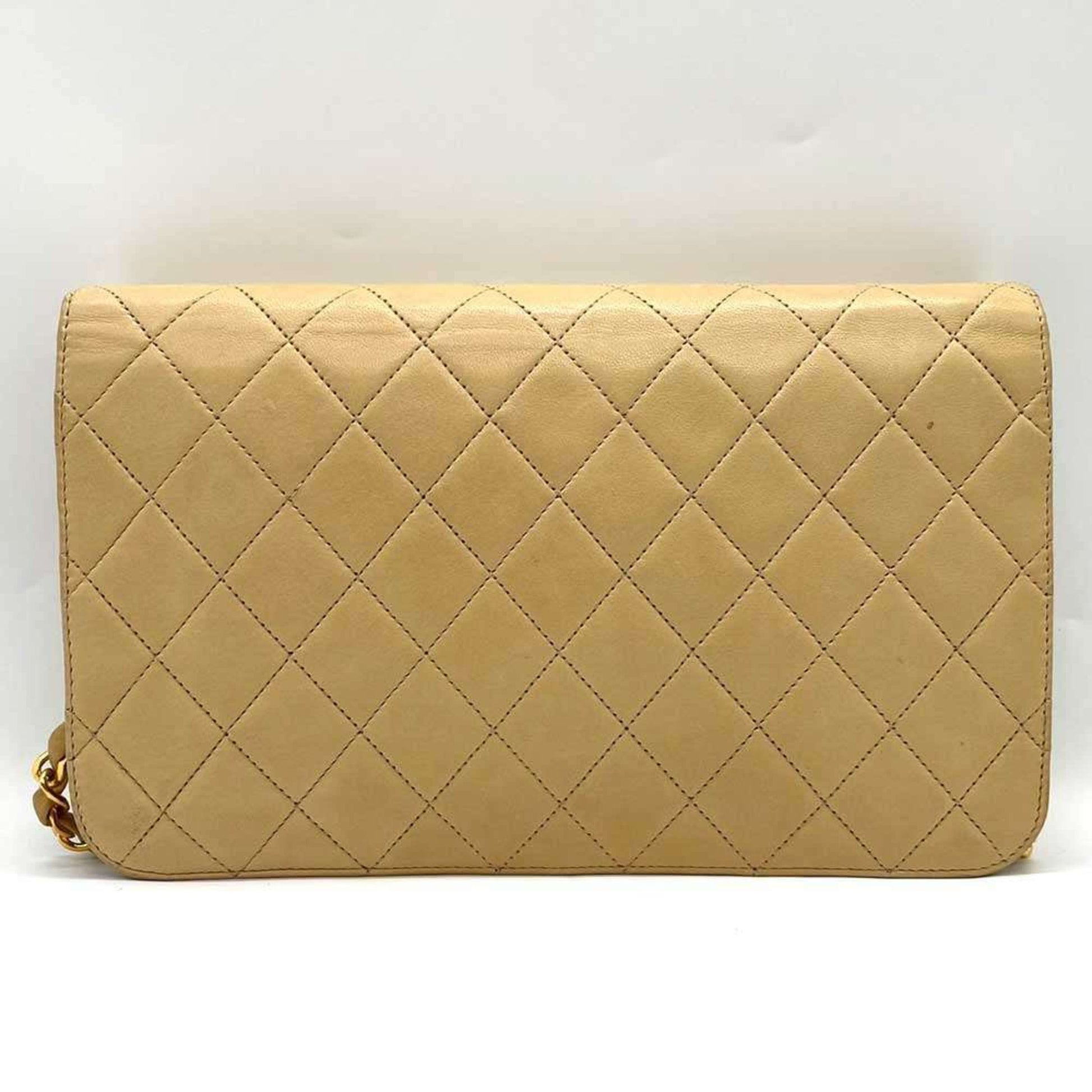 Chanel Matelasse Chain Shoulder Push Lock Bag Lambskin Beige Chanel