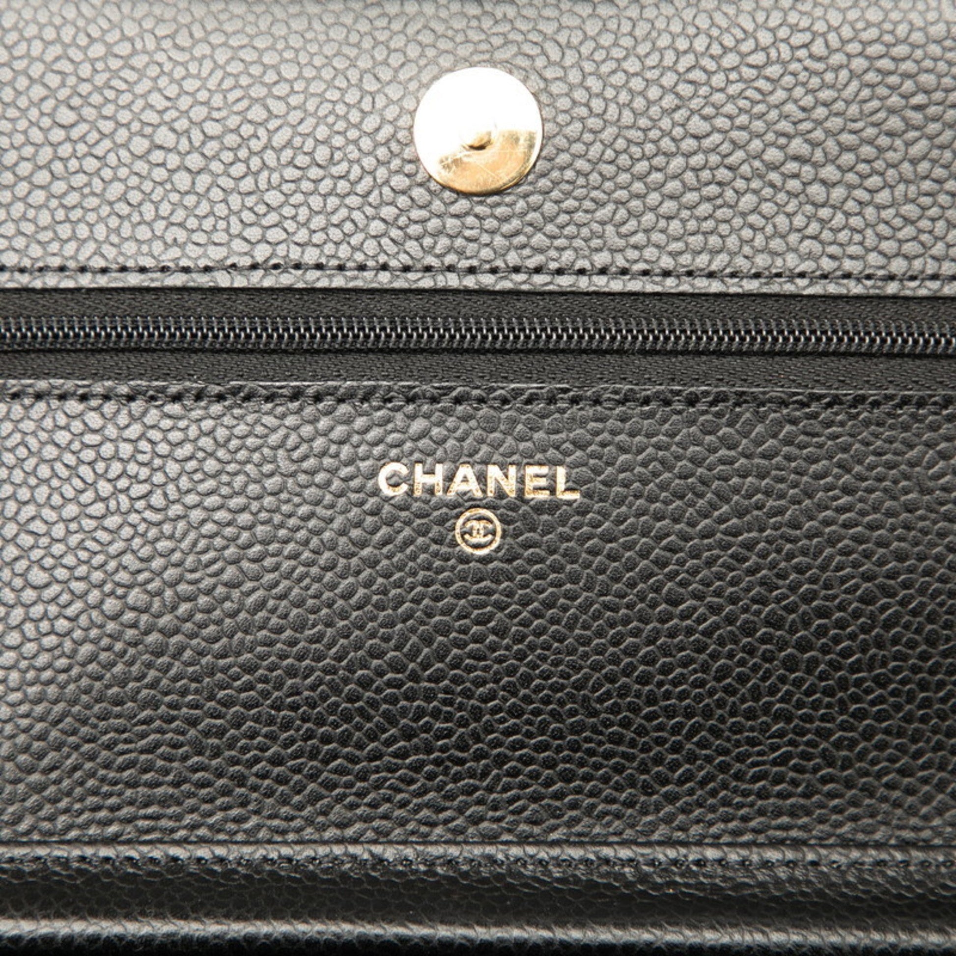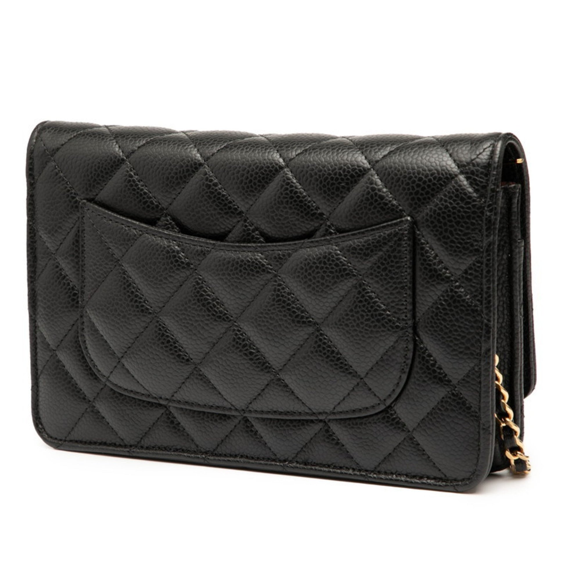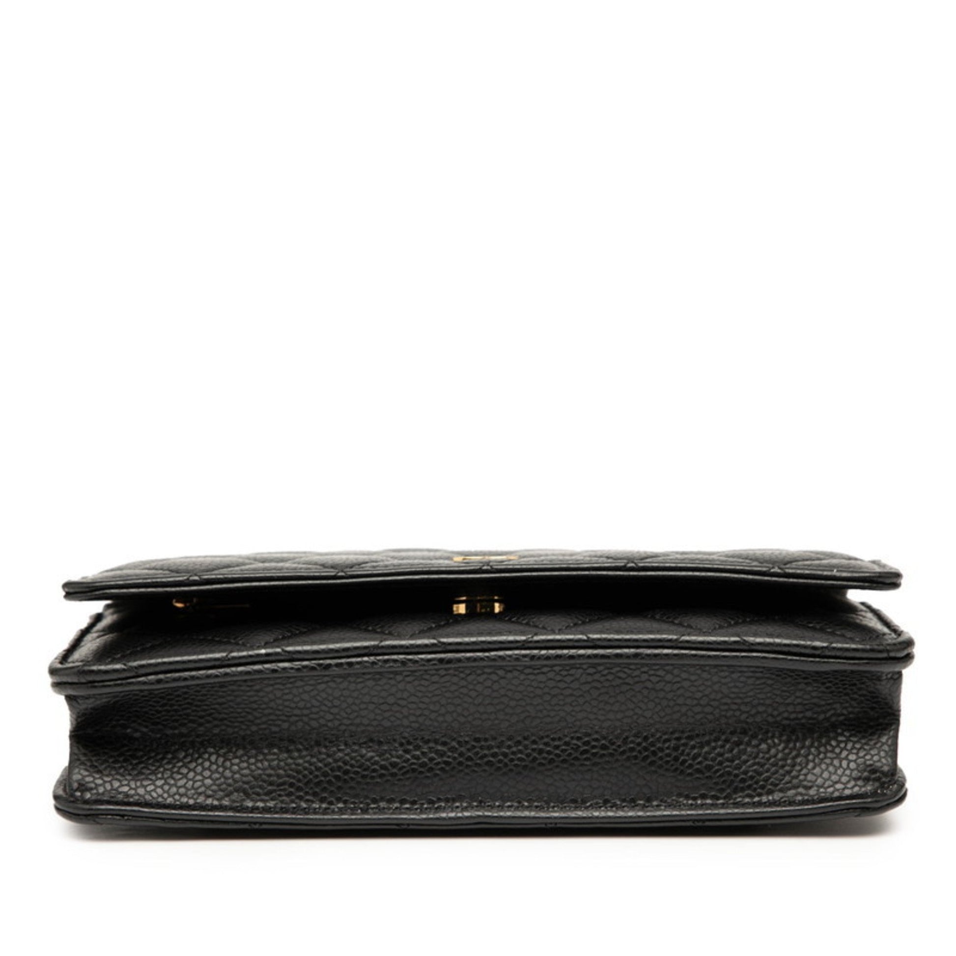 Chanel Matelasse Coco Mark Chain Wallet Shoulder Bag In Black Caviar Skin