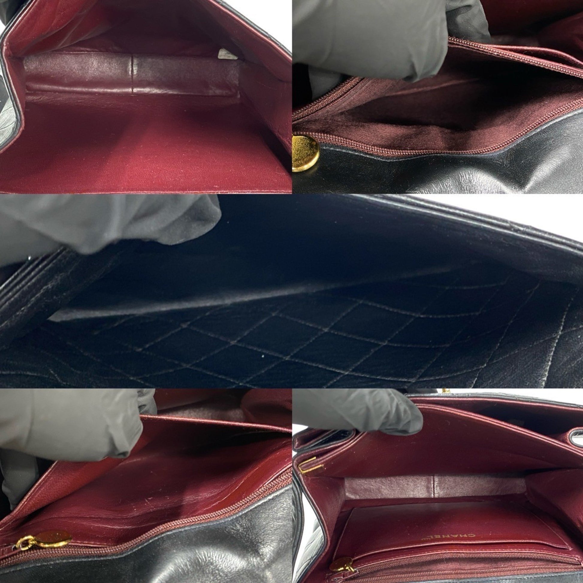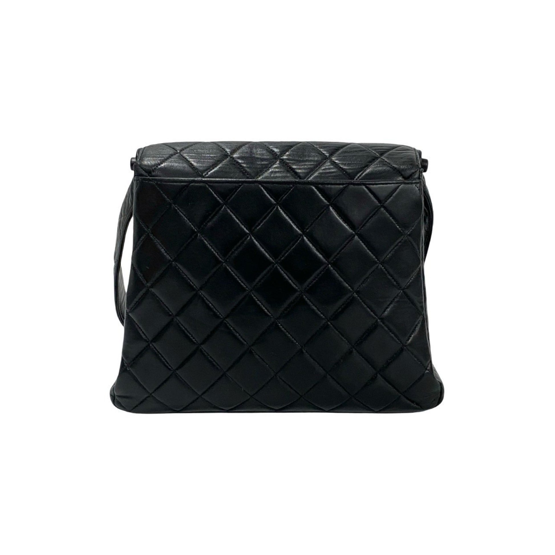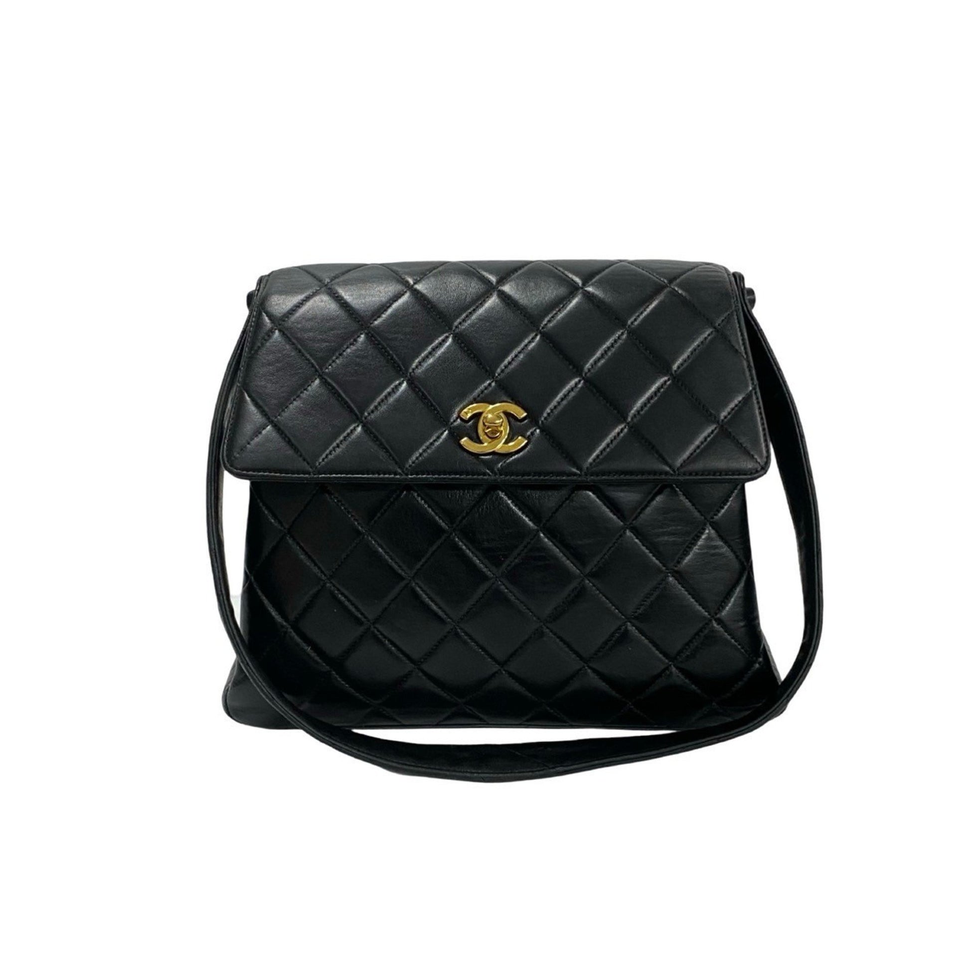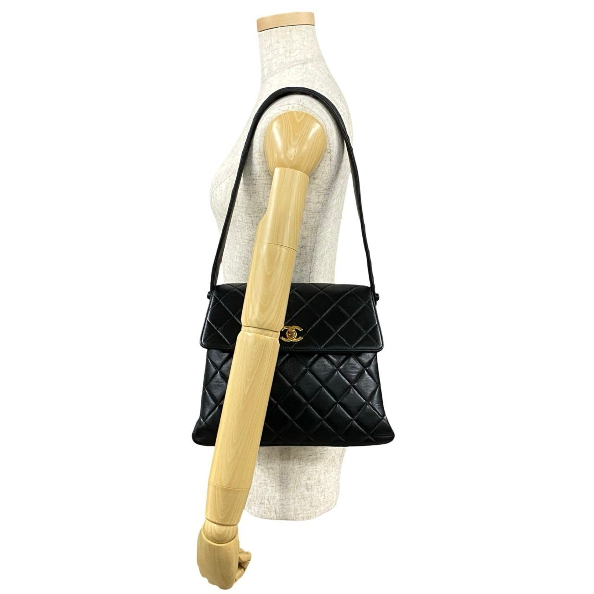 Chanel Matelasse Coco Mark Lambskin Genuine Leather One-Shoulder Bag Tote Black 37958