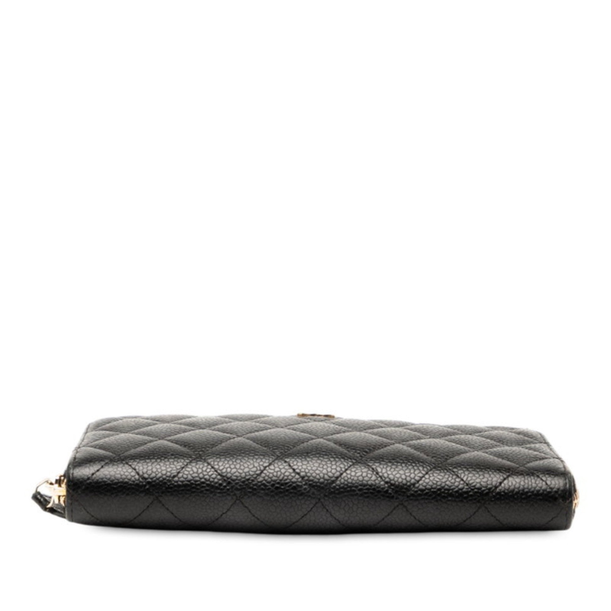 Chanel Matelasse Coco Mark Round Zip Long Wallet In Black Caviar Leather