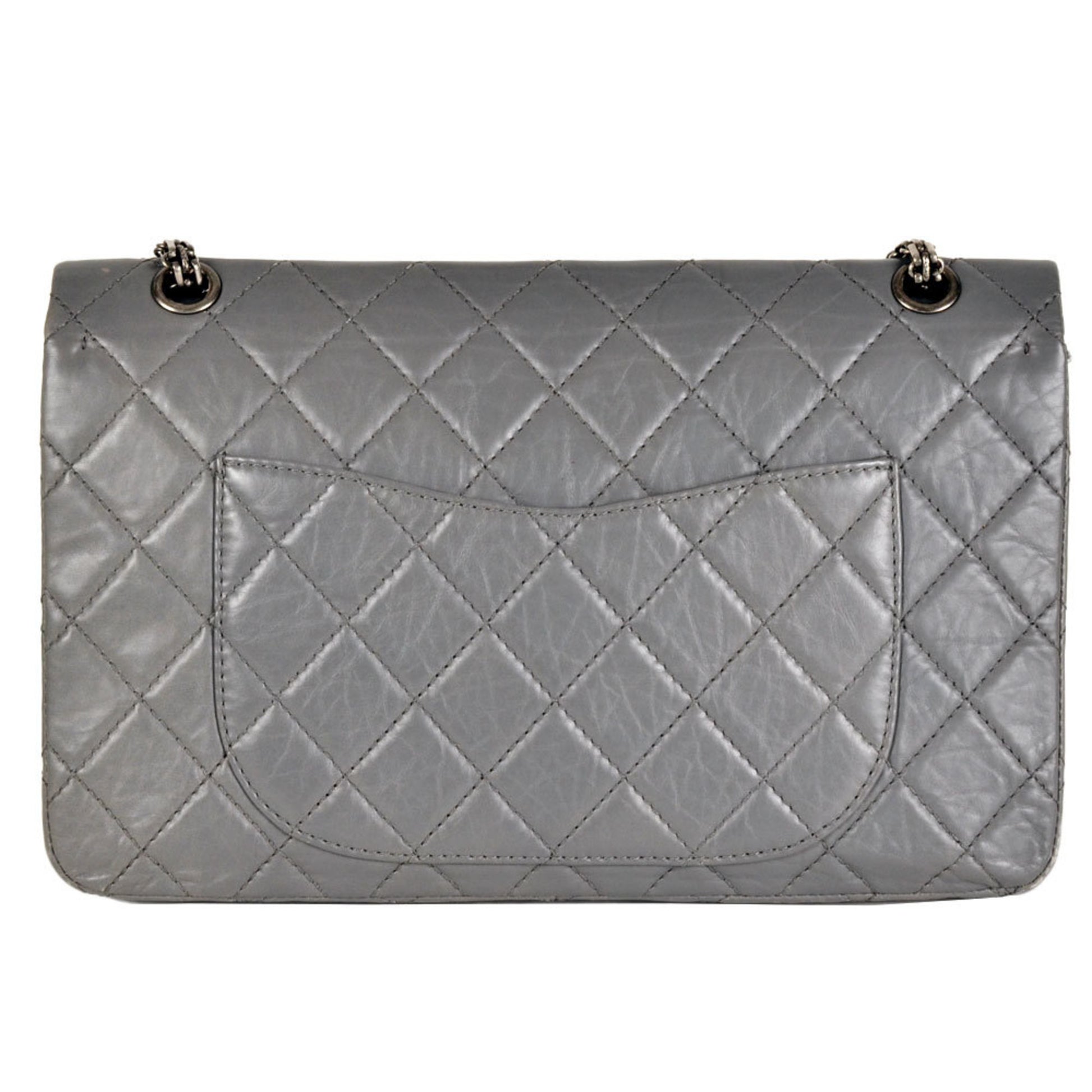 Chanel Matelasse Double Flap Chain Shoulder Bag Leather 2.55 Grey