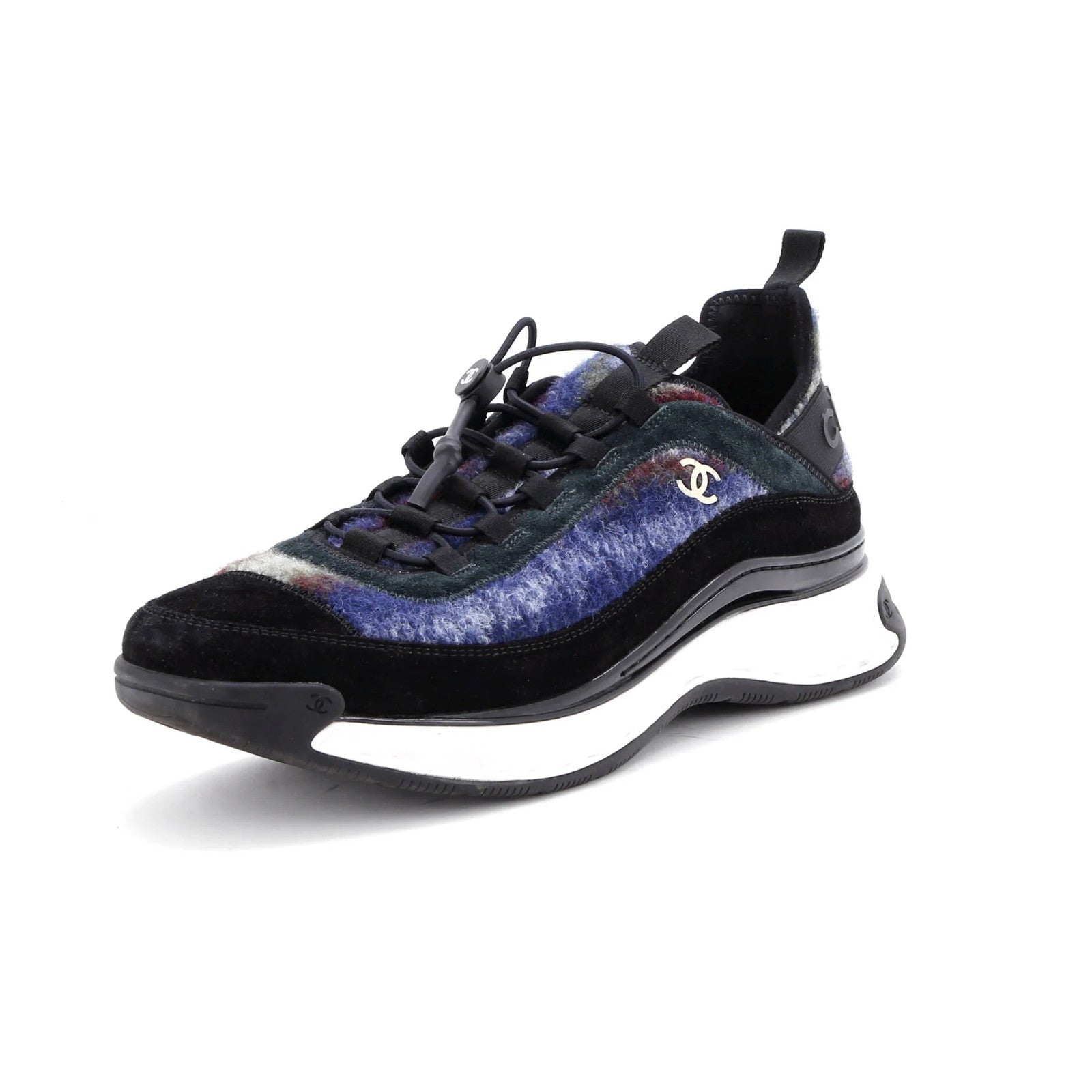 Chanel Men'S Cc Cap Toe Logo Sneakers Suede And Wool